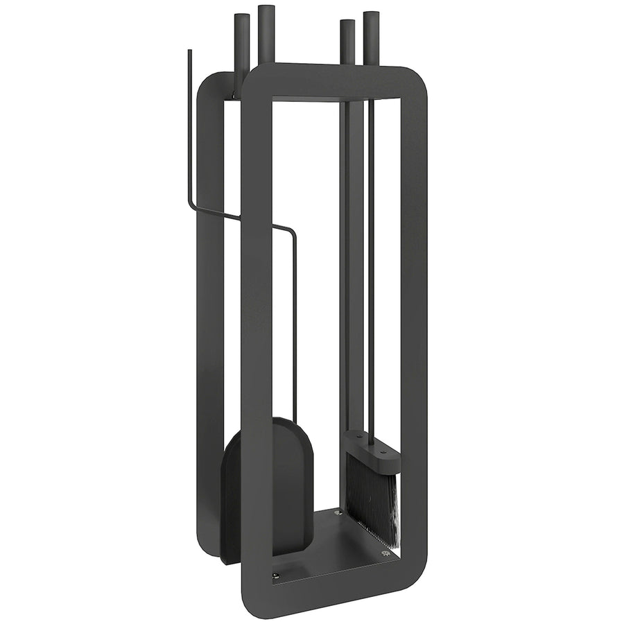 Outsunny 4 Pieces Fireplace Tools Set, Metal Fireplace Accessories Fireside Companion Set with Broom, Shovel, Poker and Bucket, Black