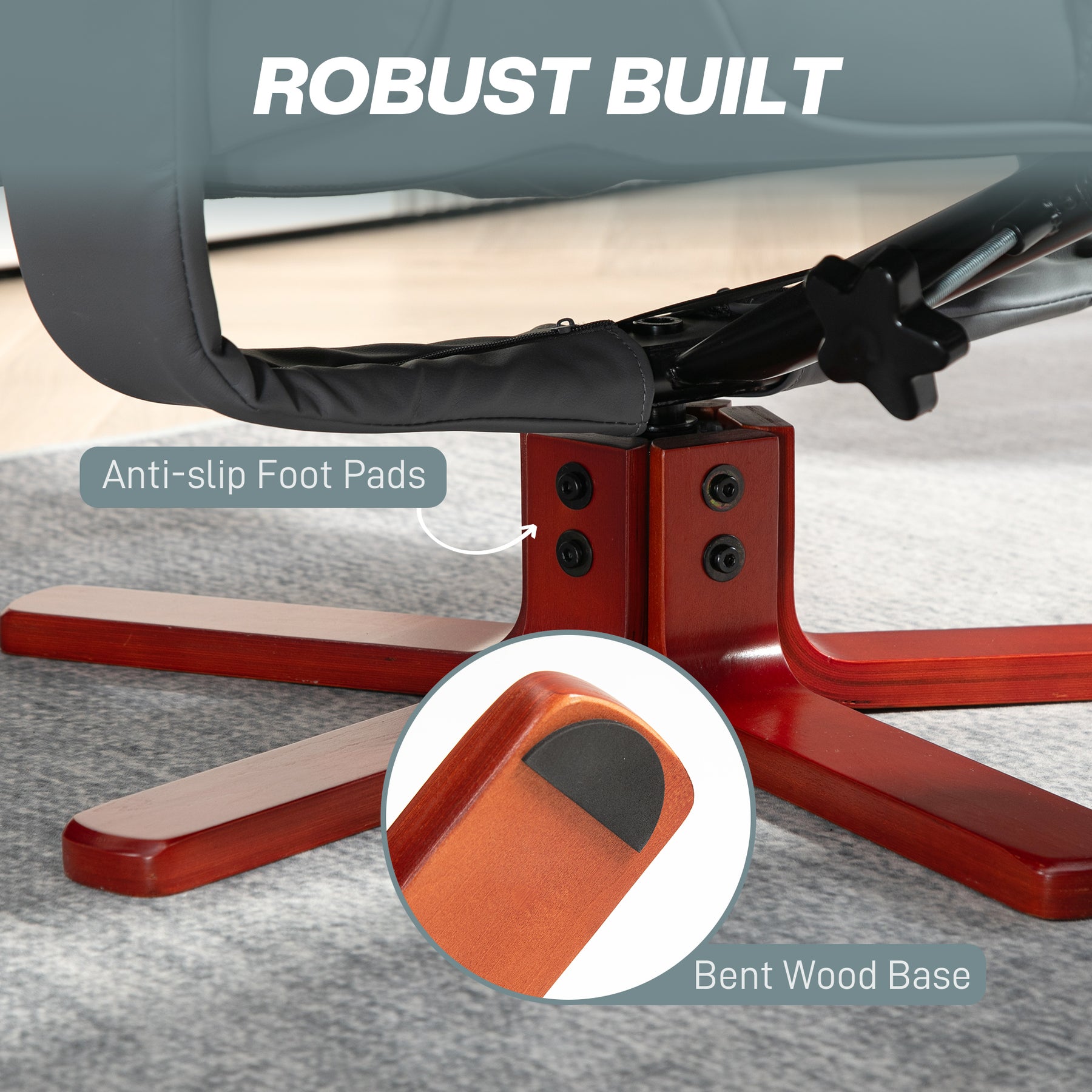- Bent wood base for strong support, with anti-slip feet