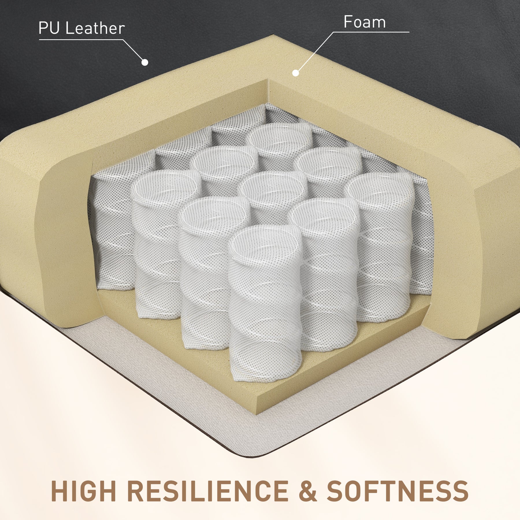 • Thick padding on seat, back and arms for comfort. PU leather upholstery is smooth and executive