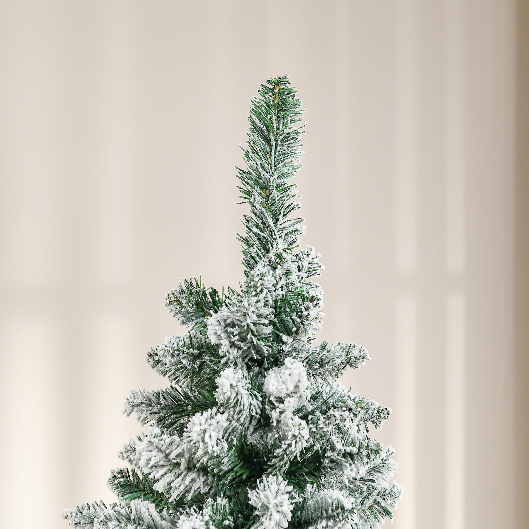 MCL 6 Ft Snow Flocked Artificial Christmas Tree, Xmas Pencil Tree with Realistic Branches, Auto Open, Pinewood Base, Green