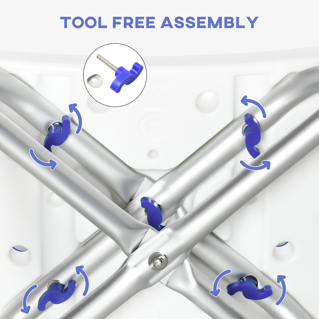 Made for assistance in the shower or bath, our shower chair for the elderly from is suitable for the elderly, injured or those who require extra assistance whilst showering or bathing. Adjustable to four different heights, the shower chair for the disabled help you find the most comfortable and safe position to sit. Its curved seat design with padding makes the shower seat for elderly comfortable to use. It's finished with four large suction foot pads for safety and stability.