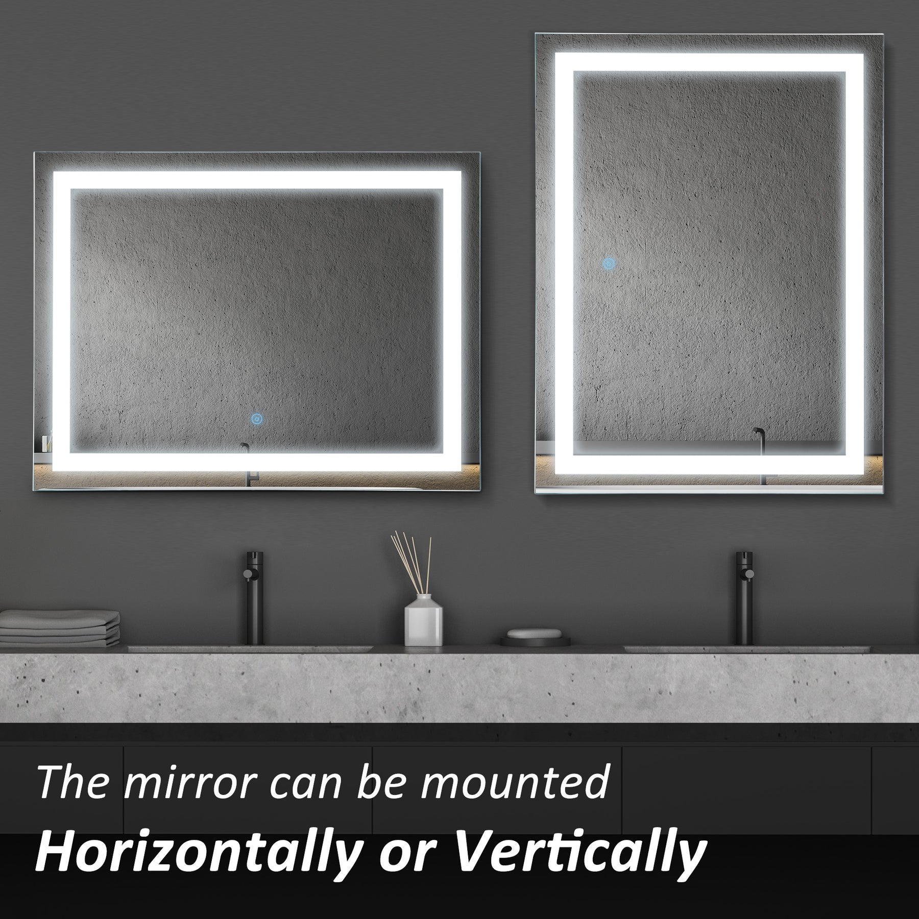 MCL 80x60cm LED Bathroom Mirror Wall Mounted Vanity Light Illuminated w/ Touch Switch Accessories Home Furnishings