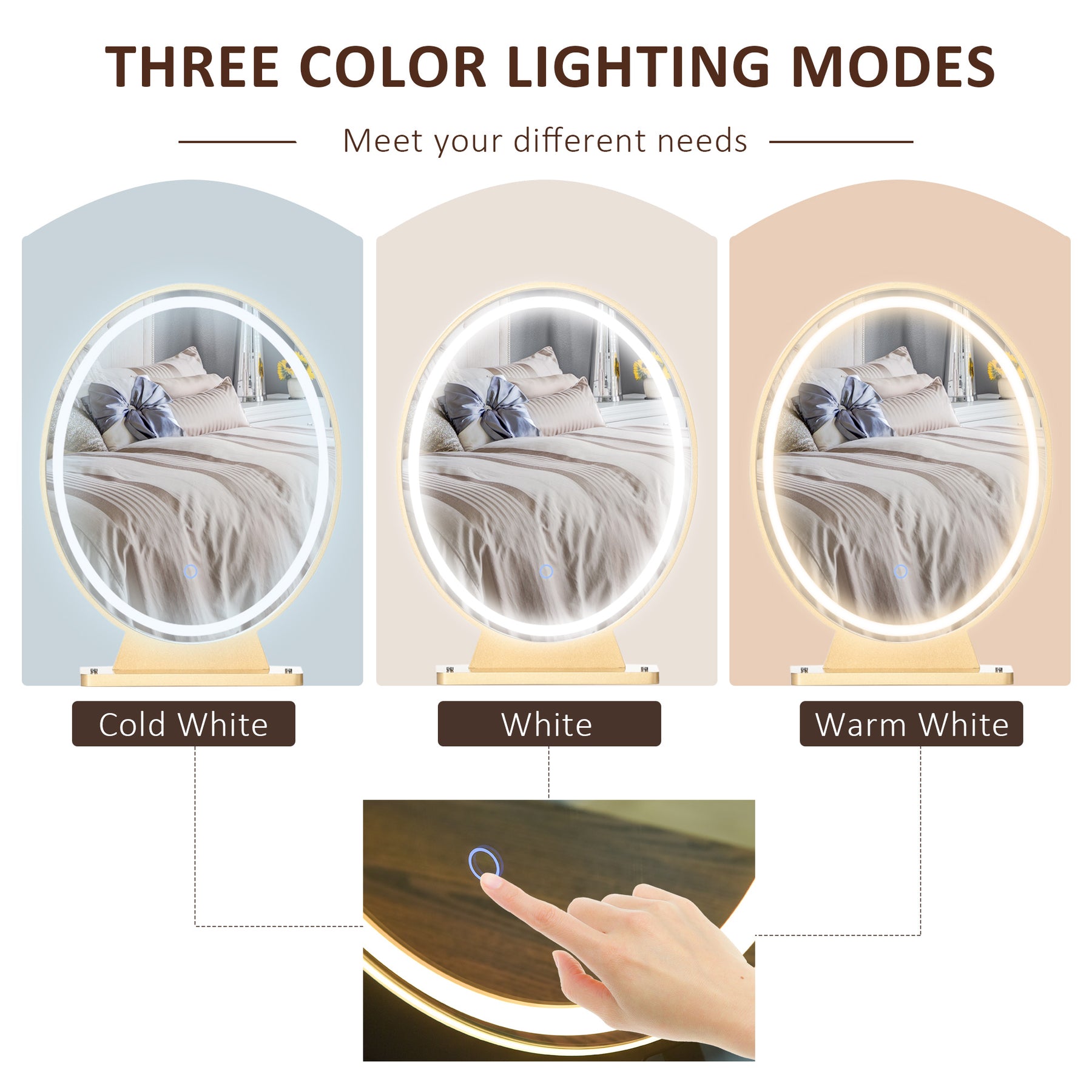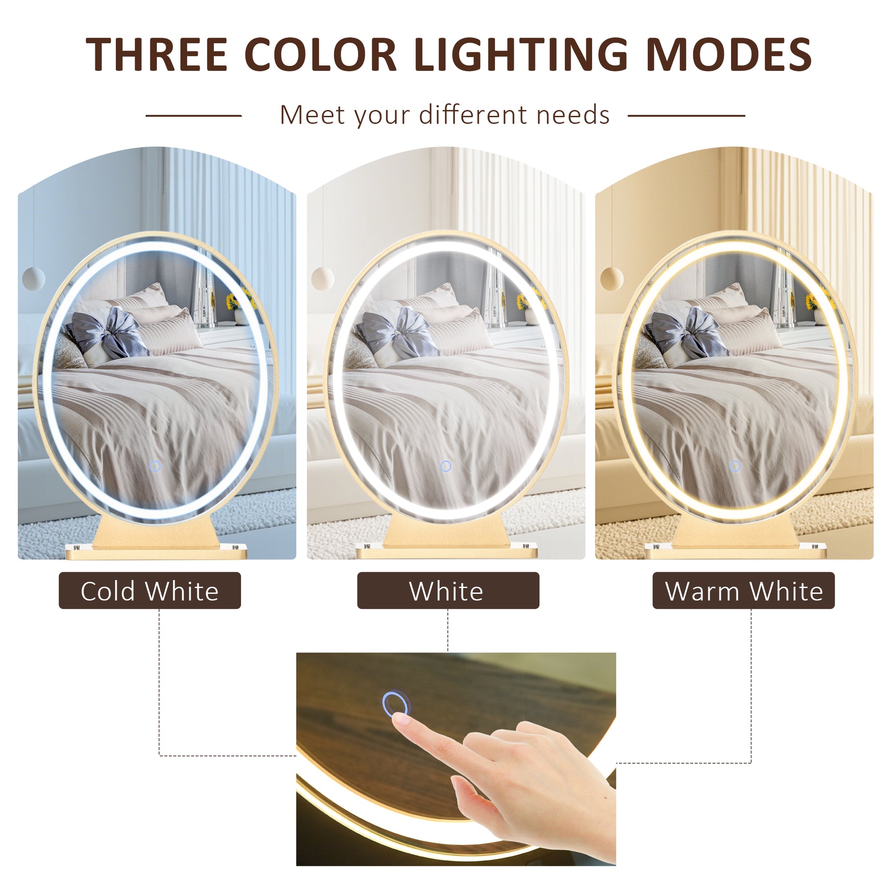 • Three LED tones for the mirror: white, cool white and warm white. Brightness also adjustable