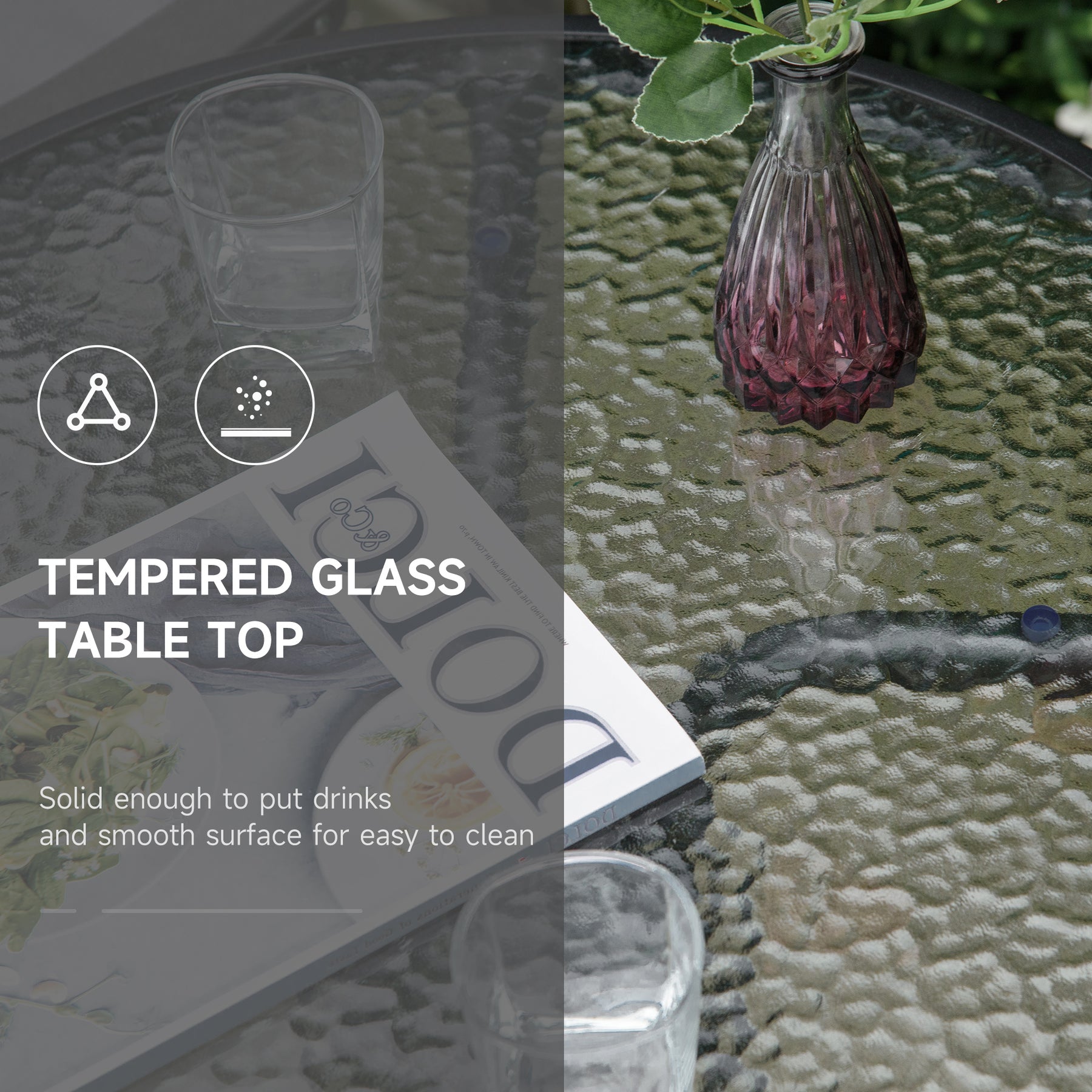The 3-piece outdoor garden patio furniture set from MCL includes a tempered glass-top table and 2 folding chairs. The table base features 4 claw-shaped legs, which makes it sturdy and steady. The folding chair features 4 adjustable backrest positions, which allows you to find the perfect position to relax. It is an ideal way to enjoy a cafe-style experience right outside your own door with MCL.