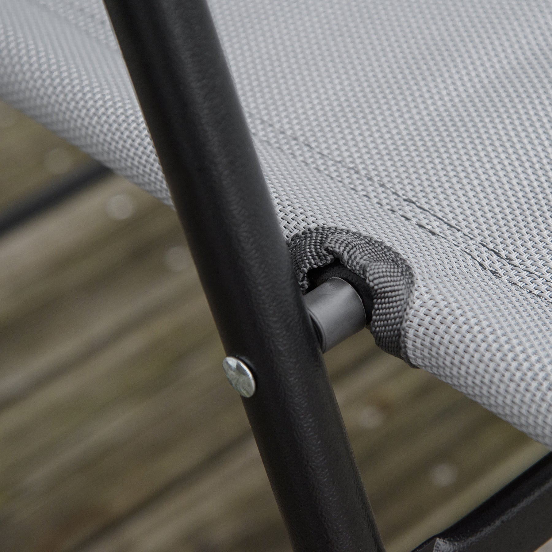 MCL 3 Piece Outdoor Bistro Set, Patio Conversation Furniture Set with 2 Folding Backrest Adjustable Armchairs and Glass Top Coffee Table, Grey