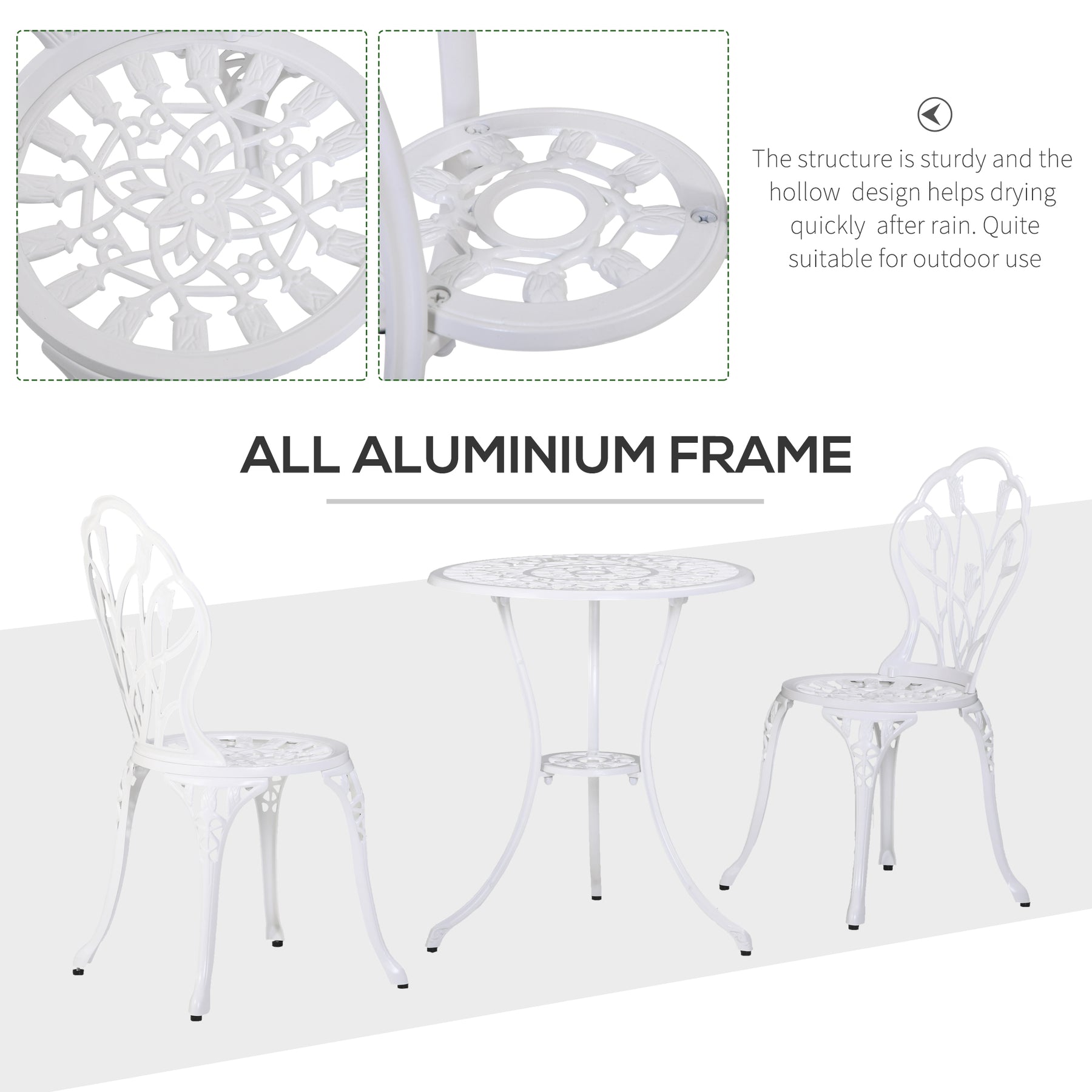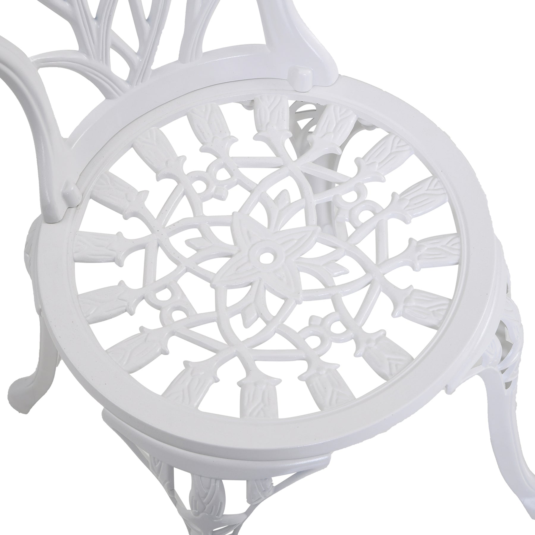 Enjoy outdoor times with some vintage charm, with this MCL three-piece bistro set. The hollow-carved tulips design is beautiful. Made from cast aluminium for long-term use. The table of this garden set features an umbrella hole, so you can all keep shaded from a parasol safely when it's sunny.