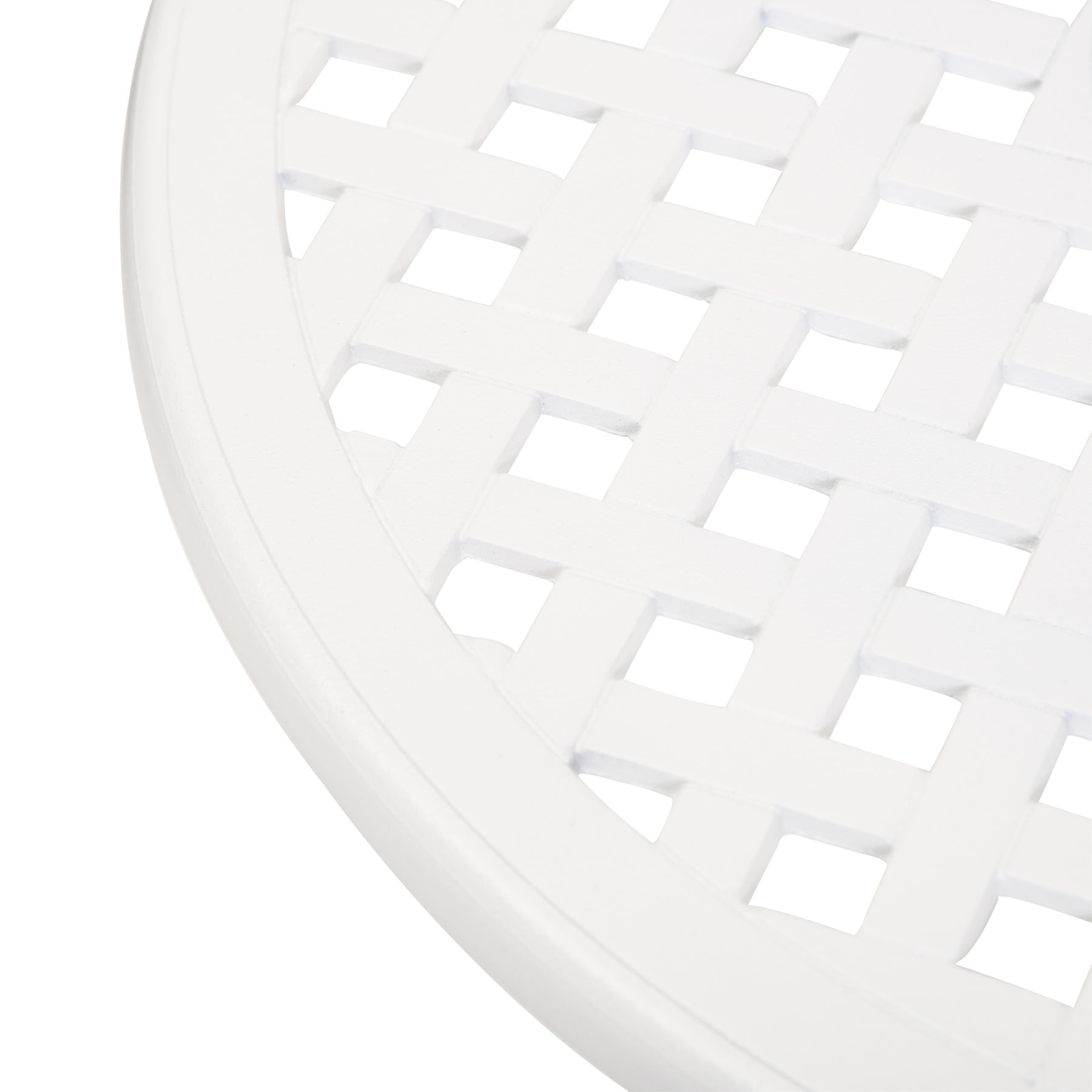 Easy elegance for the outdoors with this MCL three-piece garden bistro set. Comes with two chairs and a matching round table - sit with company. Made from aluminium, the garden table and chairs are strong pieces, which are suitable for outdoor use. Complete with adjustable feet to keep the pieces balanced.