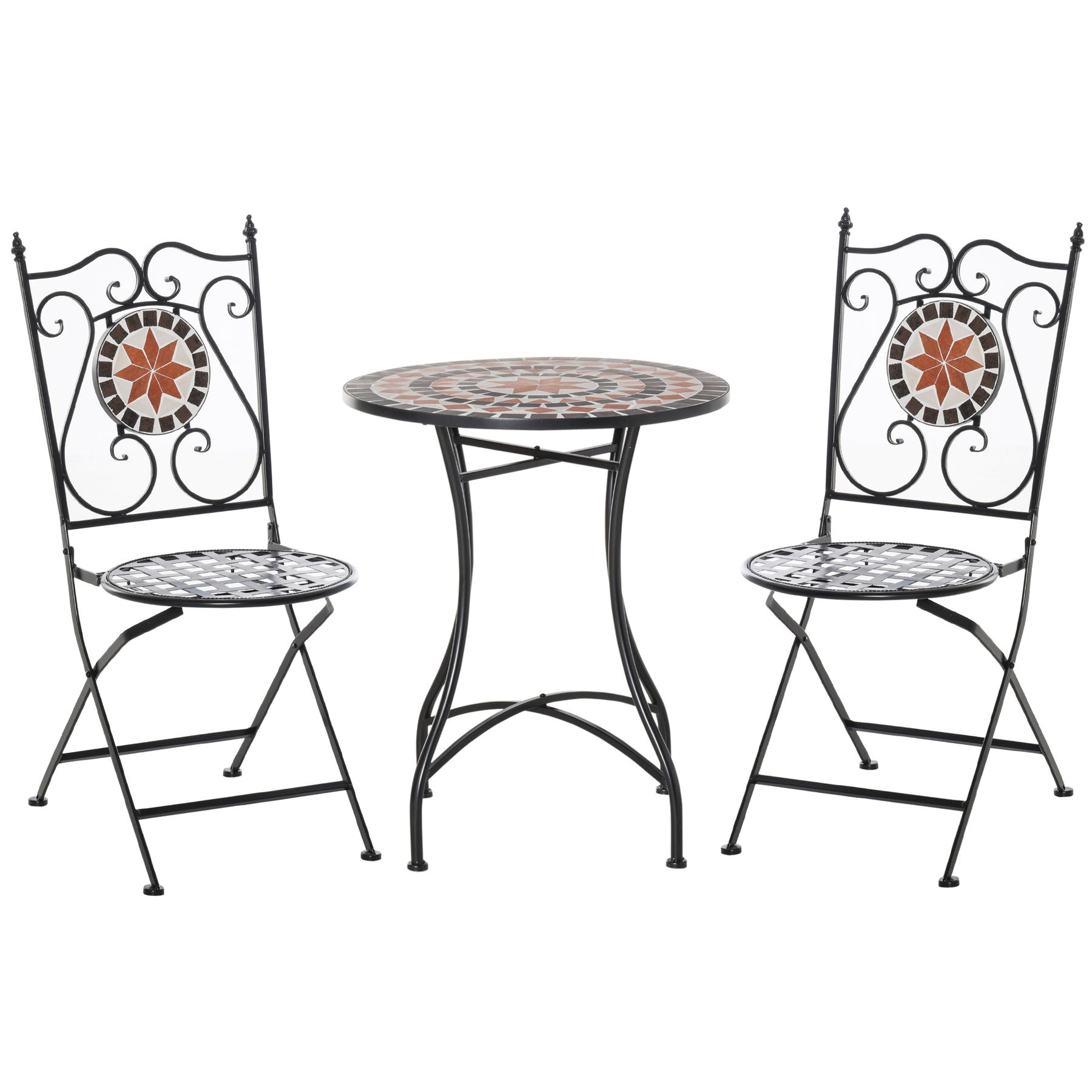Beauty for the outdoors, with this MCL outdoor bistro set. The ceramic tiles are fixed into a pretty floral-inspired design. The metal frames mean this is a strong, supportive set. The chairs are foldable for easy storage when not being used.