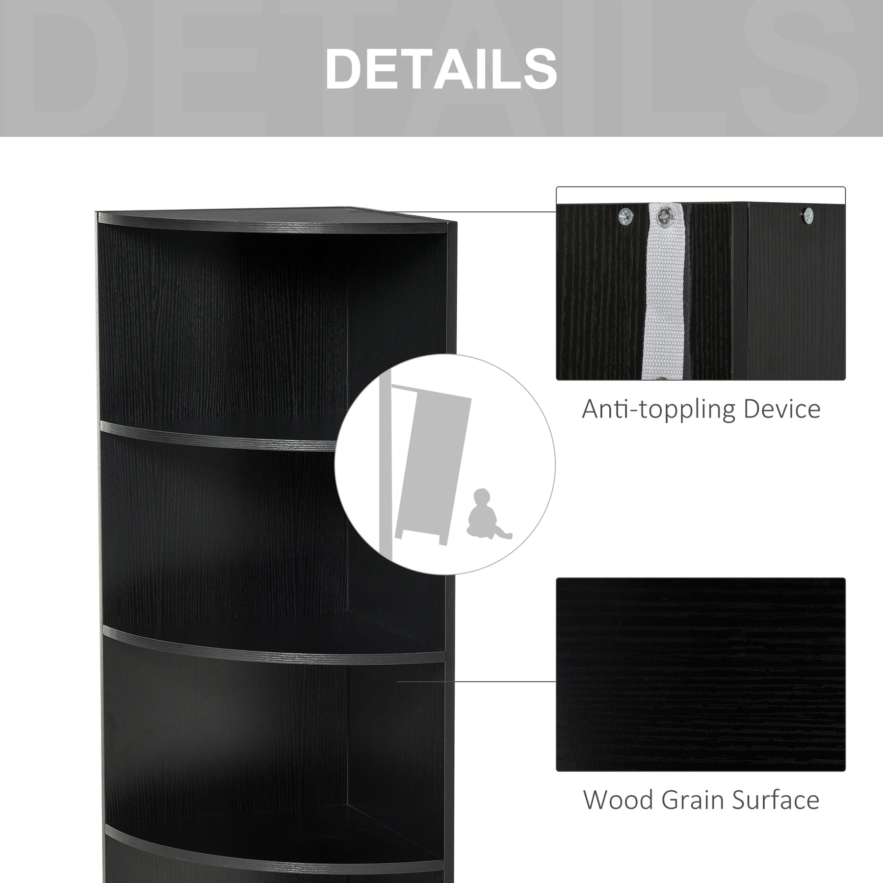 This corner shelf is ideal for those looking for extra storage without compromising on space. Crafted from thick particle board with a melamine surface so it’s easy to clean and maintain, it features four spacious shelves to store and display books, photos, plants and more. In a fan-shaped design that fits neatly into corners, it is finished to blend in beautifully with your style décor. A perfect addition to living rooms, bedrooms and hallways.