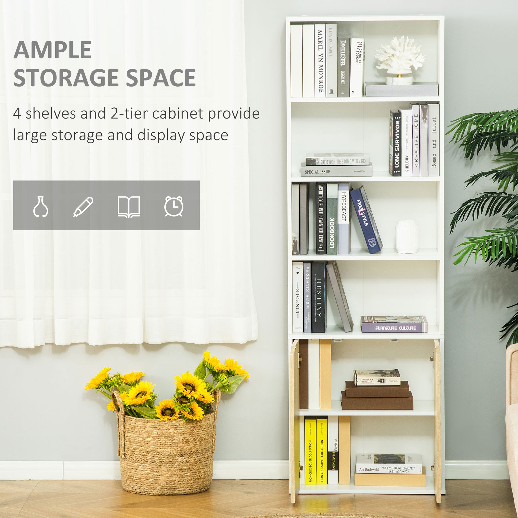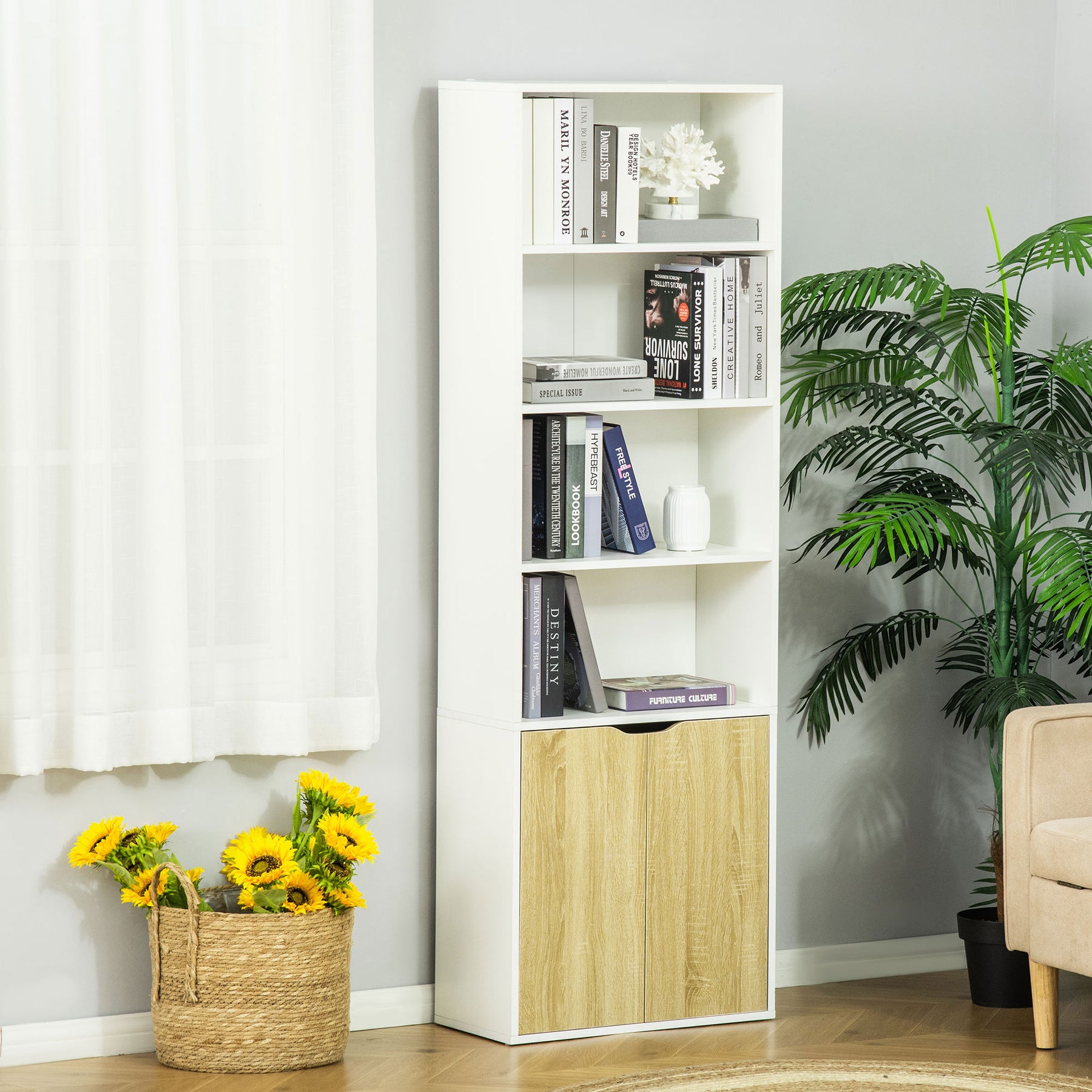 MCL 6-Tier Tall Bookcase, Bookshelf with 4 Open Shelves and Double Door Storage Cabinet, Freestanding Display Rack for Living Room, Bedroom, Home Office, Study, 59 x 29 x 180cm, White and Oak