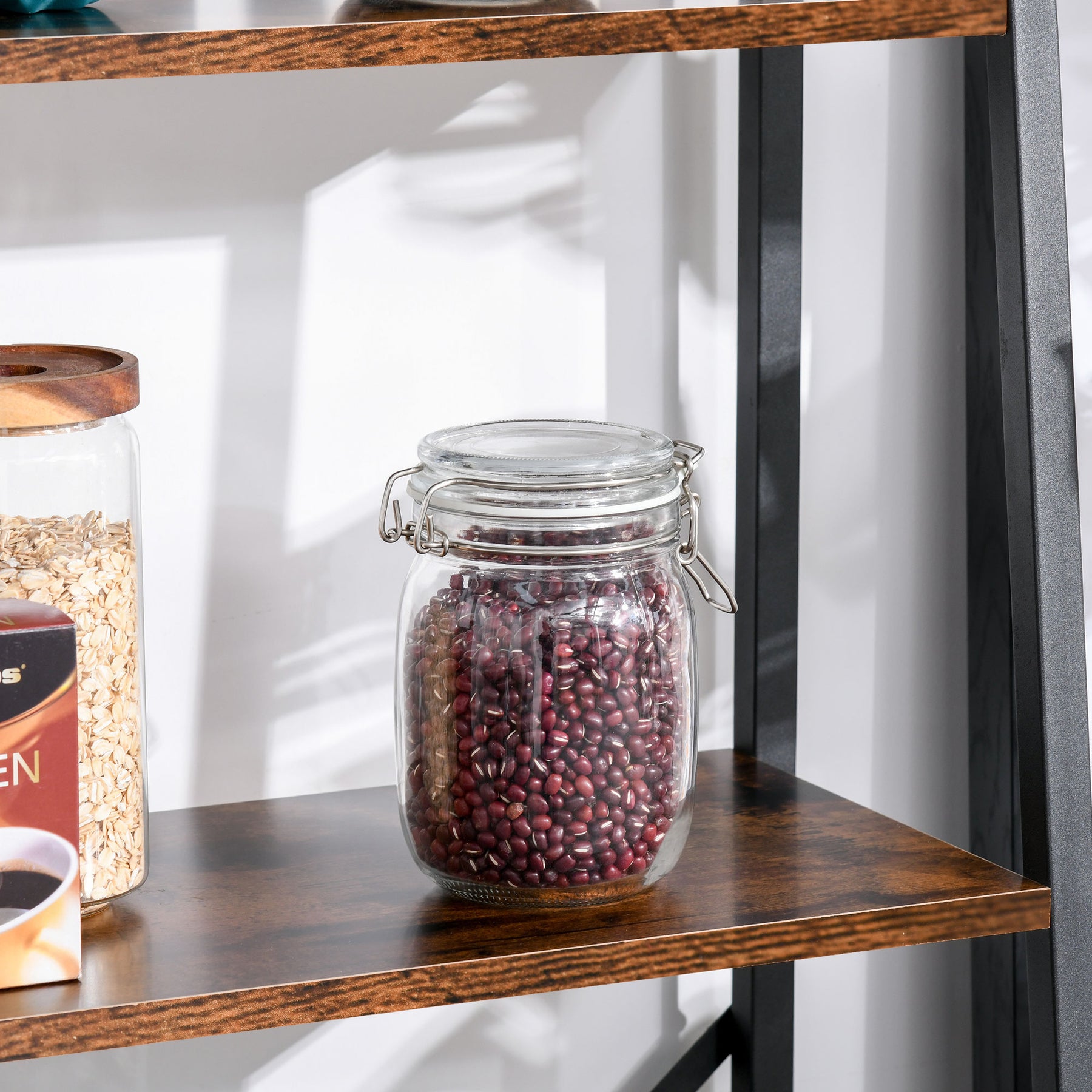 MCL Ladder Shelf, Bookshelf, 4-Tier Industrial Storage Rack for Living Room, Bedroom, Kitchen, Rustic Brown and Black