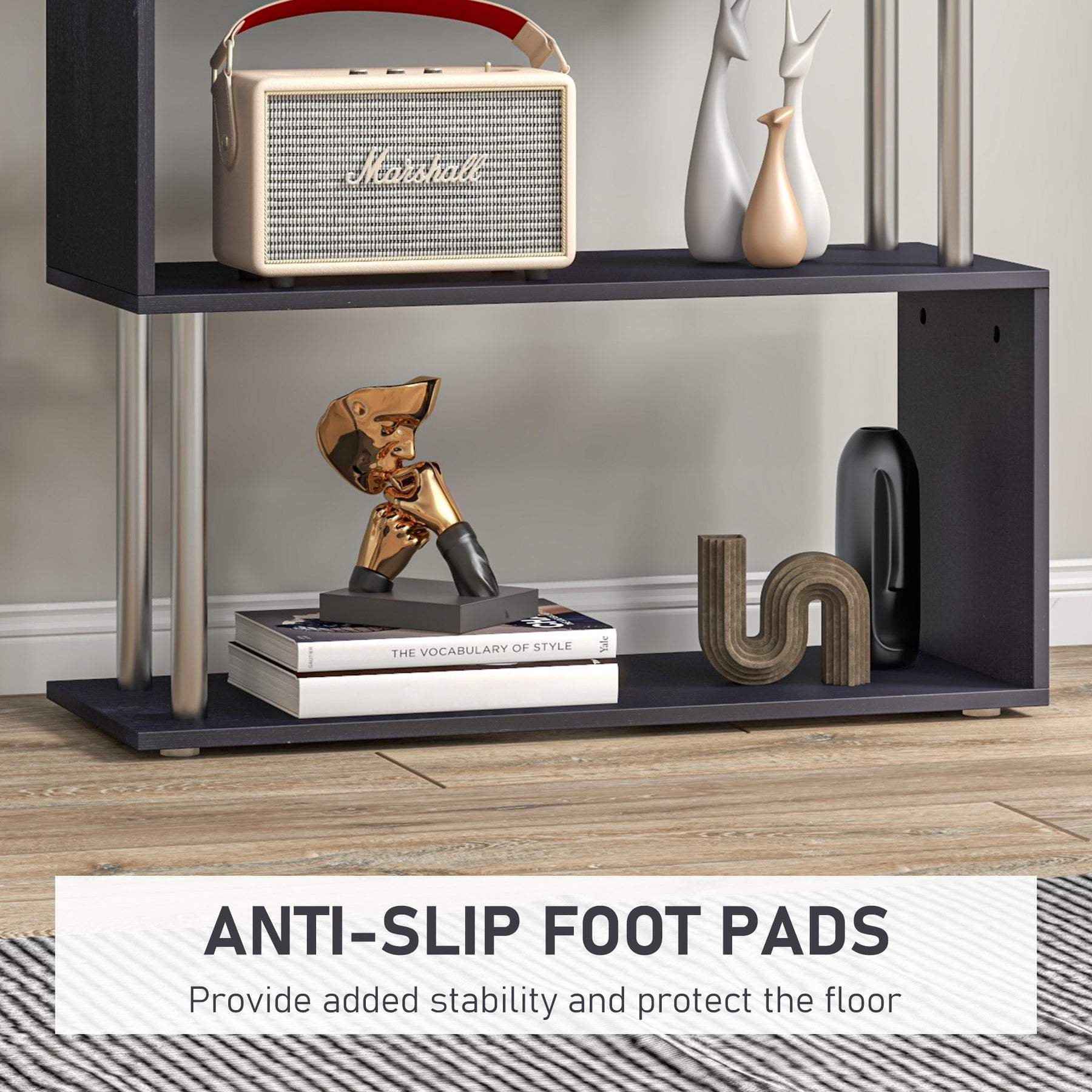 MCL S Shape Bookcase, 5 Tiers Bookshelf, Modern Freestanding Storage Shelf for Home Office, Study, Living Room, 80 x 30 x 145cm Black