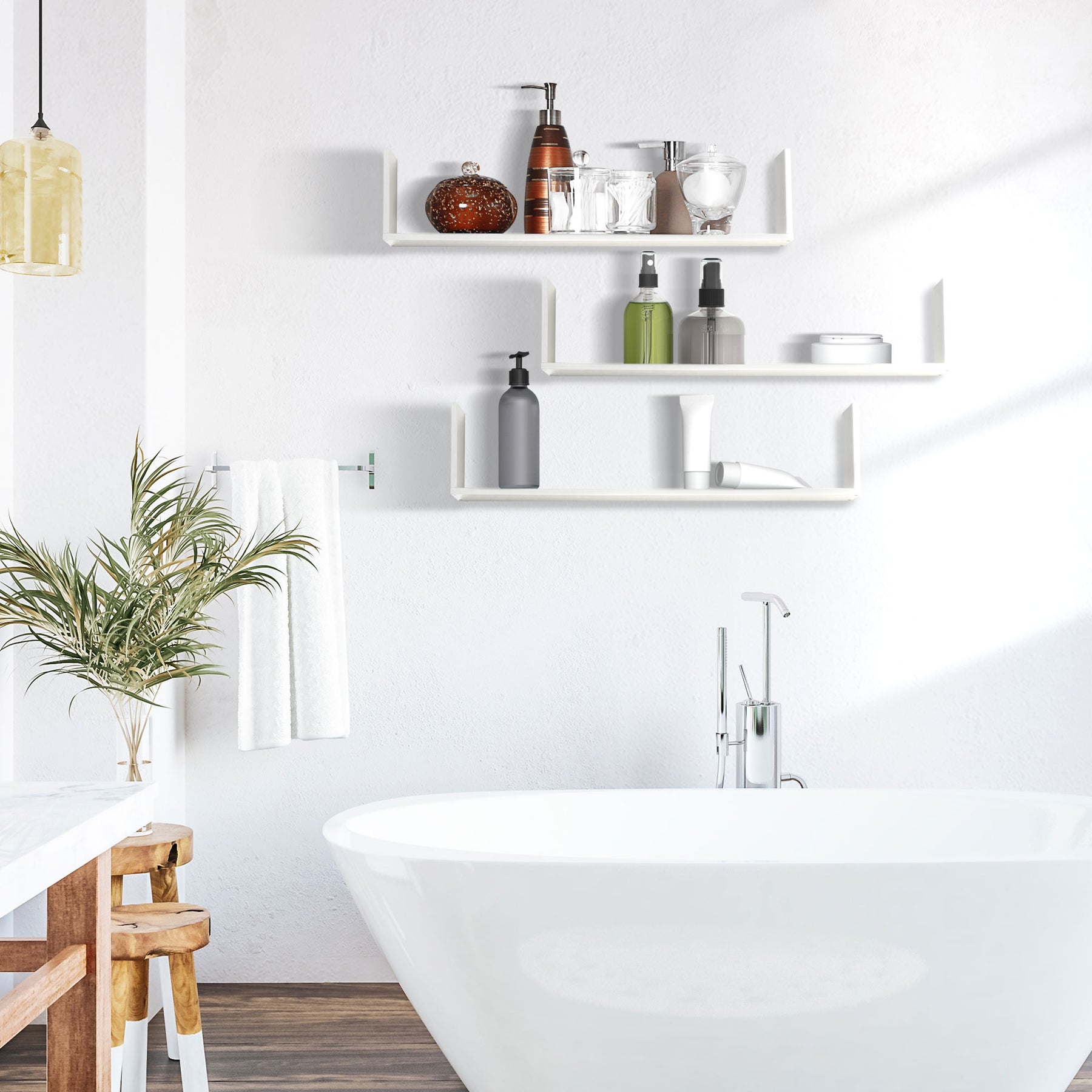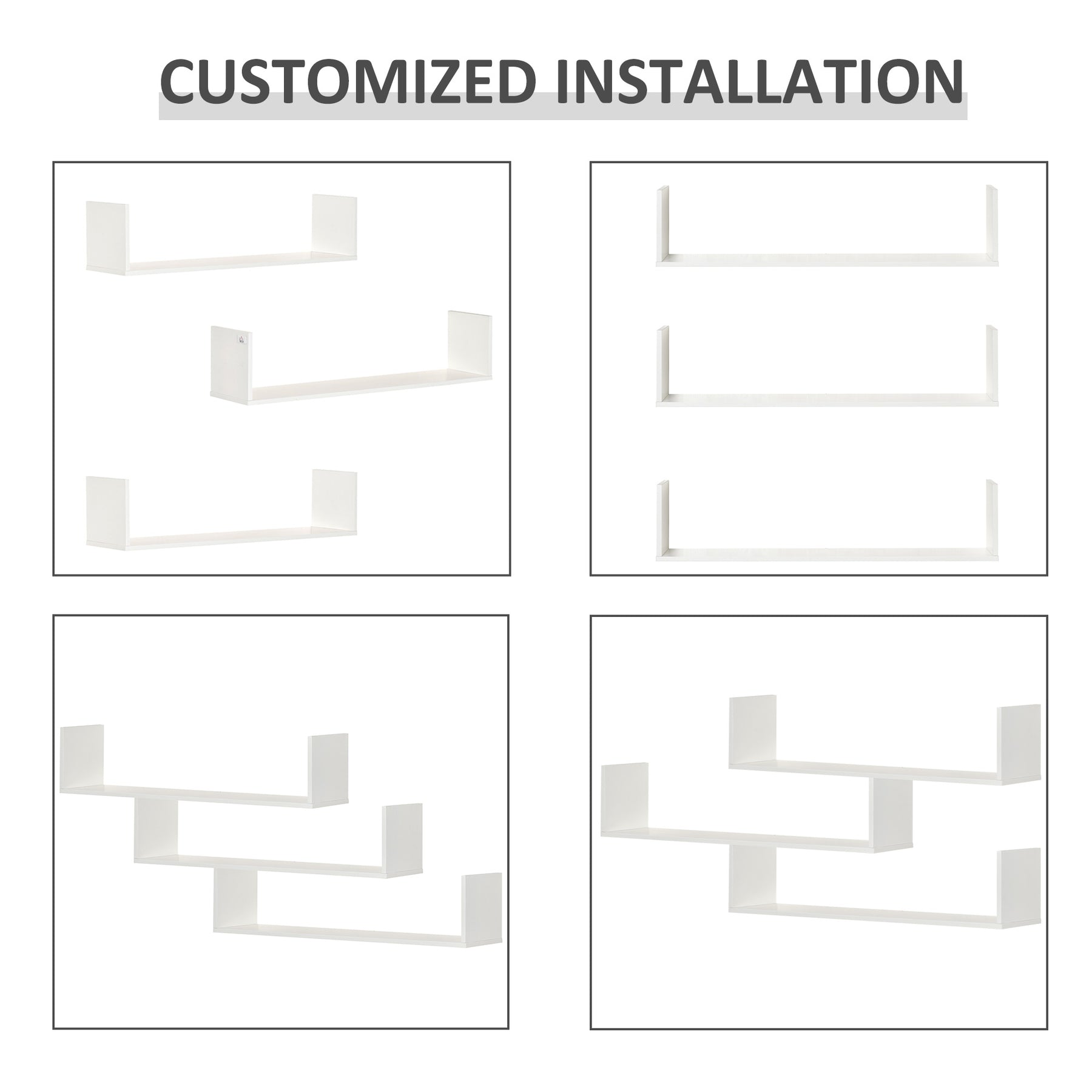 MCL Set of 3 Wooden U-Shaped Floating Shelves Set Wall Mounted Hanging Bookshelf CD DVD Storage Display for Bedroom Living Room Kitchen, White