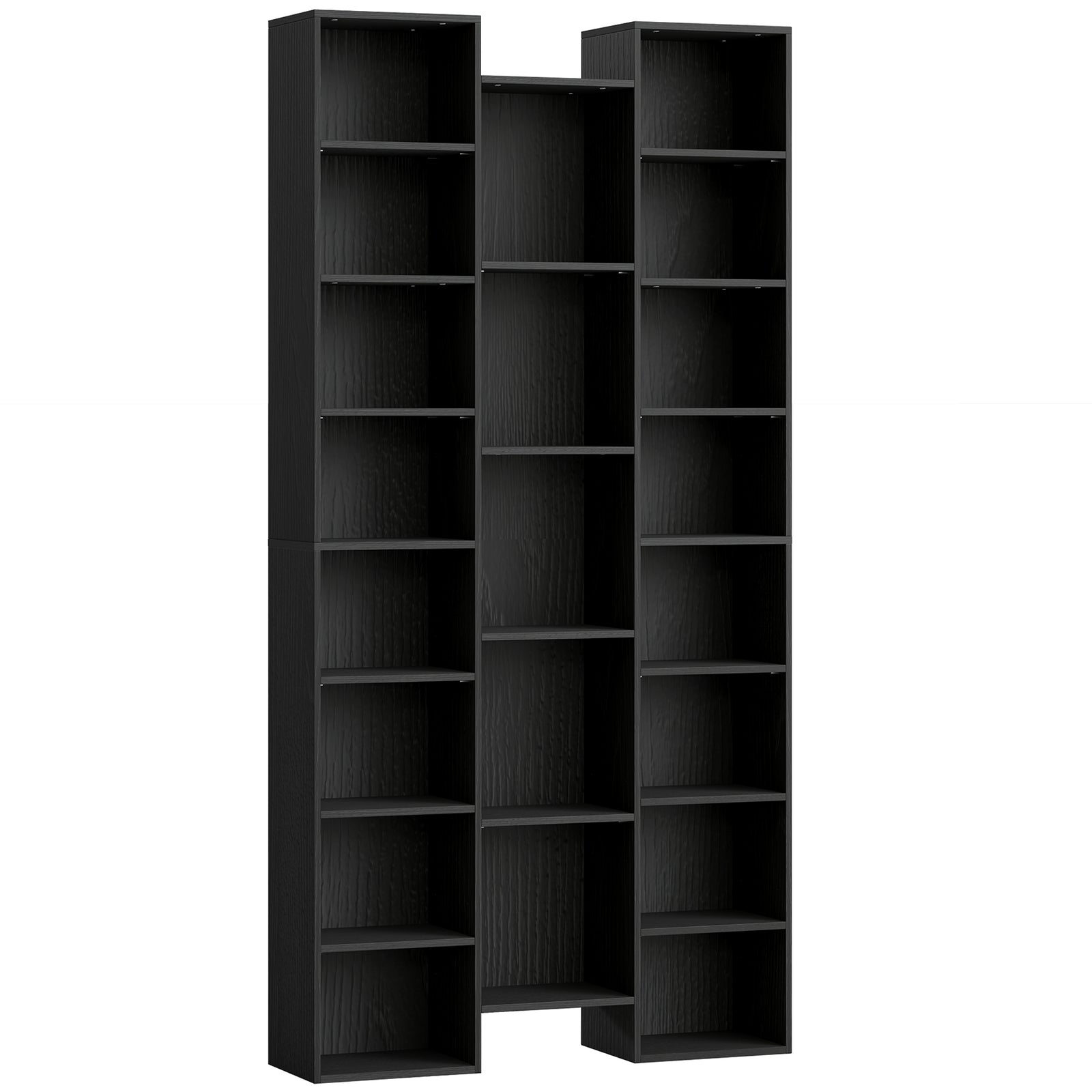 MCL 204 CD Media Display Shelf Unit Set of 2 Blu-Ray Tower Rack w/ Adjustable Shelves Bookcase Storage Organiser, Black