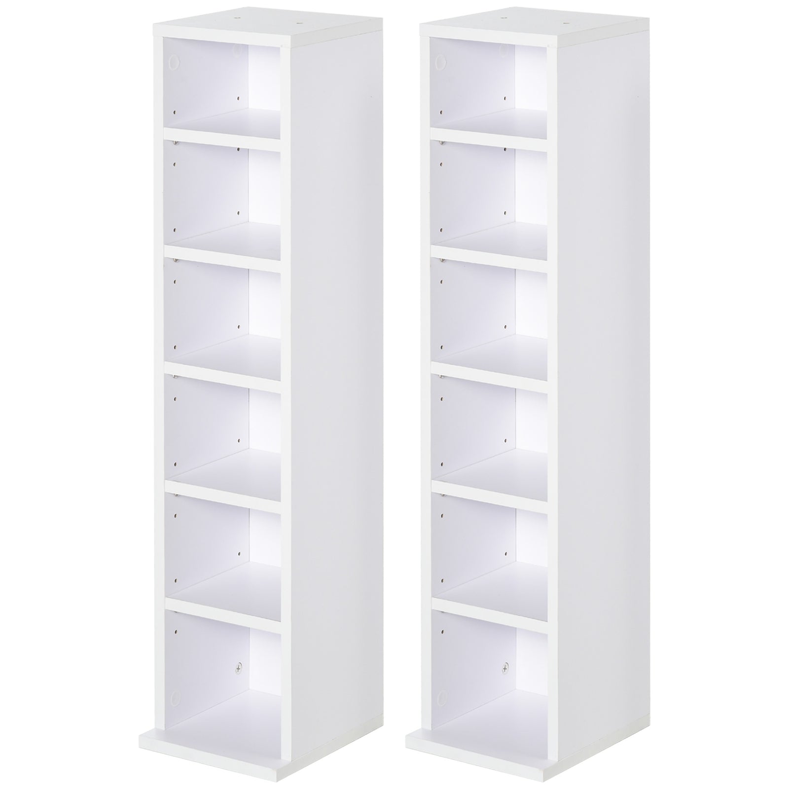 MCL 204 CD Media Display Shelf Unit Set of 2 Blu-Ray Tower Rack w/ Adjustable Shelves Bookcase Storage Organiser, White
