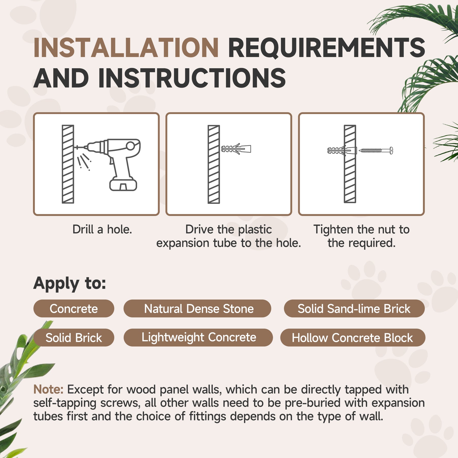 Transform your home into a feline paradise with 's cat climbing wall! This four-piece set includes cosy steps and a double platform with a soft ladder, plus a corner jumping platform, all crafted from plush-covered particleboard. These stylish, wall-mounted pieces save space and cater to your cat's climbing instincts, making them a superb addition for all cat owners!