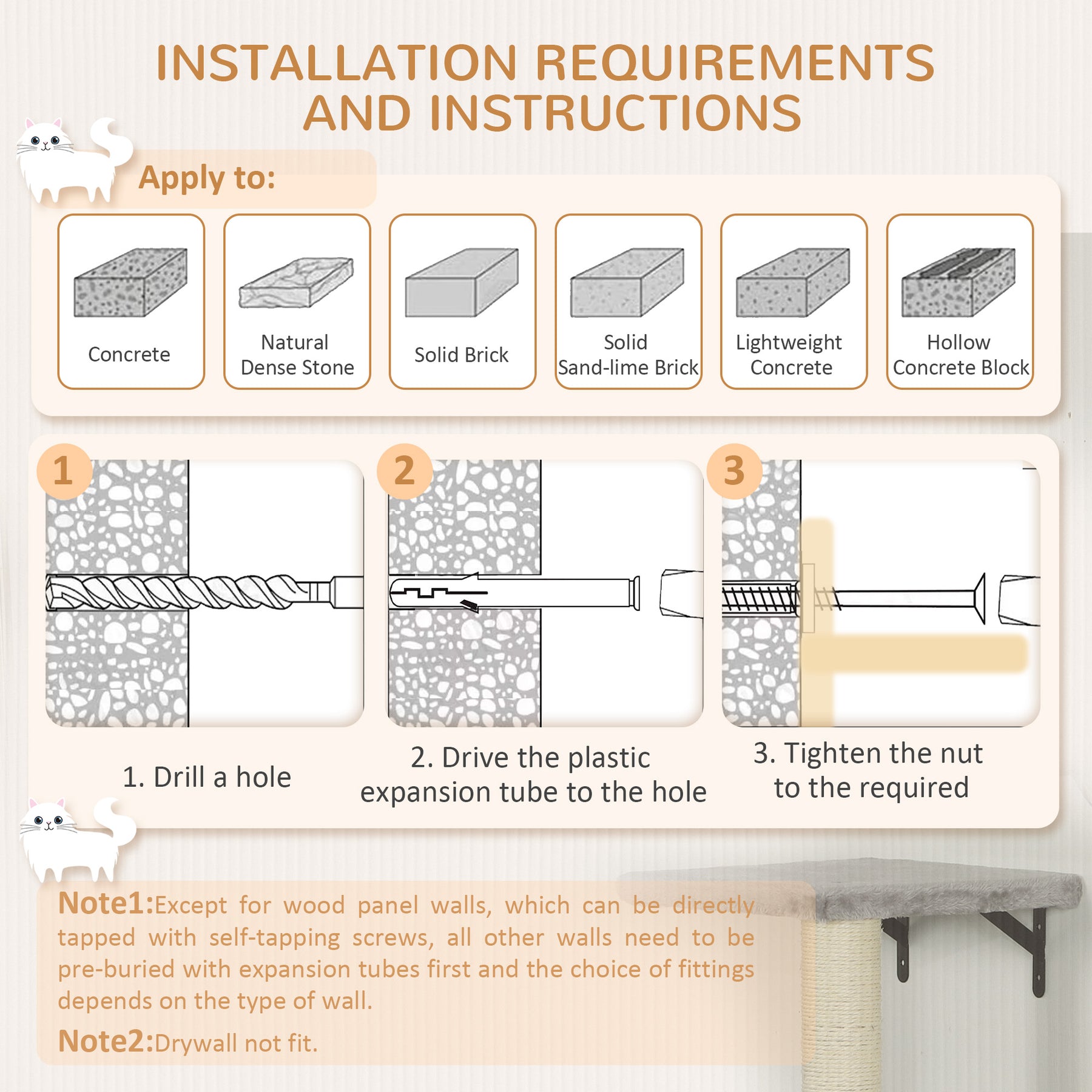 - Wall-mounted design saves floor space, suits cat's natural instincts