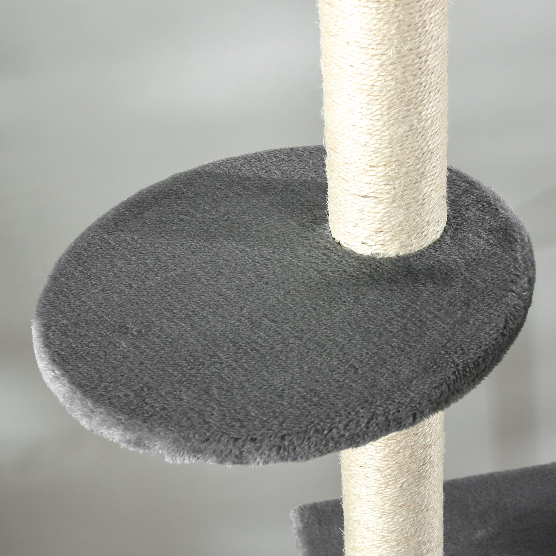 Give your cat their own floor-to-ceiling hideout with this tall cat tree from MCL. With multiple platforms, it's ideal for more than a pet. The middle post features scratching areas to safely keep their claws sharp. The various platforms, hammock and house giving them different places to rest. This floor ceiling cat tree is wrapped in plus upholstery so it's soft and cosy.