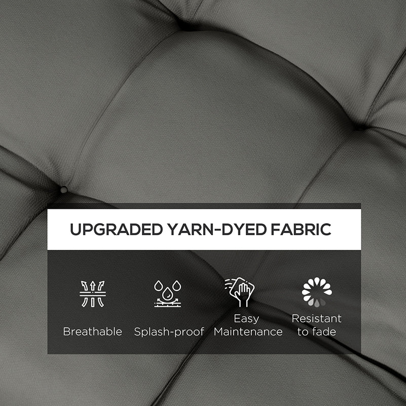Colour meets comfort with this cushion set. Filled with thick foam, you'll enjoy sitting outdoors for extended hours. Fabric covers are soft, the tufting adds style. Flame retardant for safety, each cover is resistant to light stains for cleanliness. Complete with tie fastenings to secure to each seat.