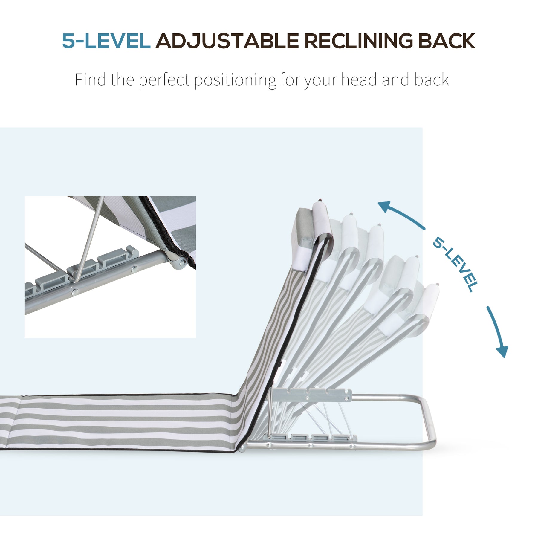 MCL Set of 2 Foldable Garden Beach Chair Mat Lightweight Outdoor Sun Lounger Seats Adjustable Back Metal Frame PE Fabric Head Pillow w/ Carry Bag, Light Grey