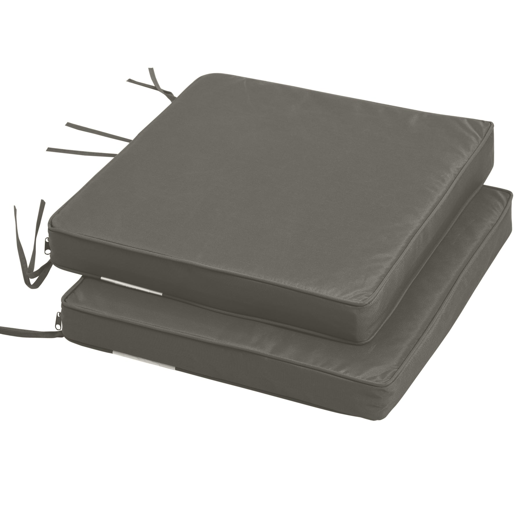 New comfort for garden and outdoor furniture - this set of two garden cushions, from . Each is filled with soft padding for comfort. Polyester fabric covers are soft on the skin, can be spot cleaned for hygiene. Two tie fastenings to hold the outdoor seat cushion in place. Comfort and style in your garden, refreshed.