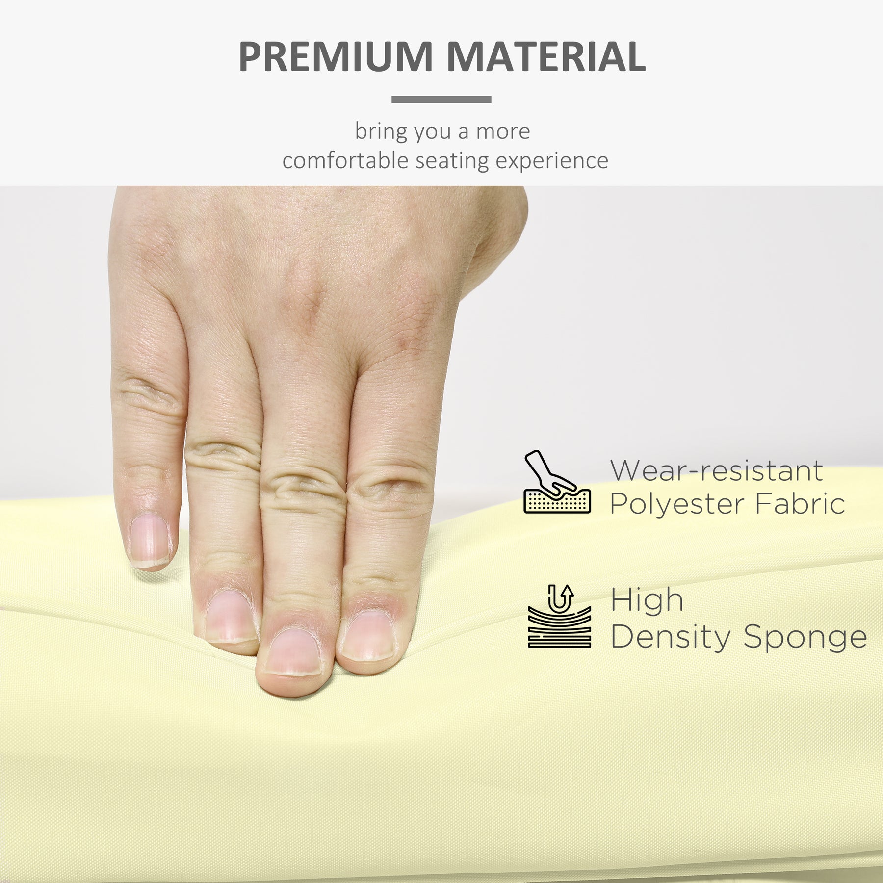 Two outdoor seat cushions, from , to transform your seating in comfort. Polyester fabric covers are soft on the skin - they are also removable and washable to keep clean easily. Sponge filling for comfort. With a seat and back cushion included for upper and lower body comfort and support.