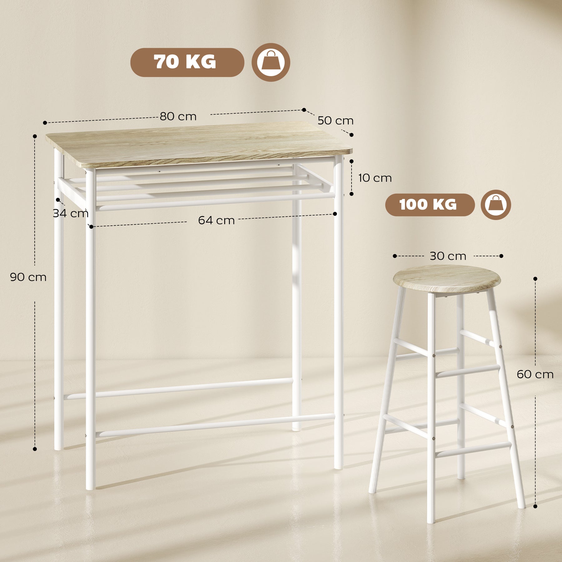 MCL Bar Table Set, Bar Table and Stools Set, Footrest and Storage Shelf, for Kitchen, Dining Room, Pub, Cafe, White and Oak