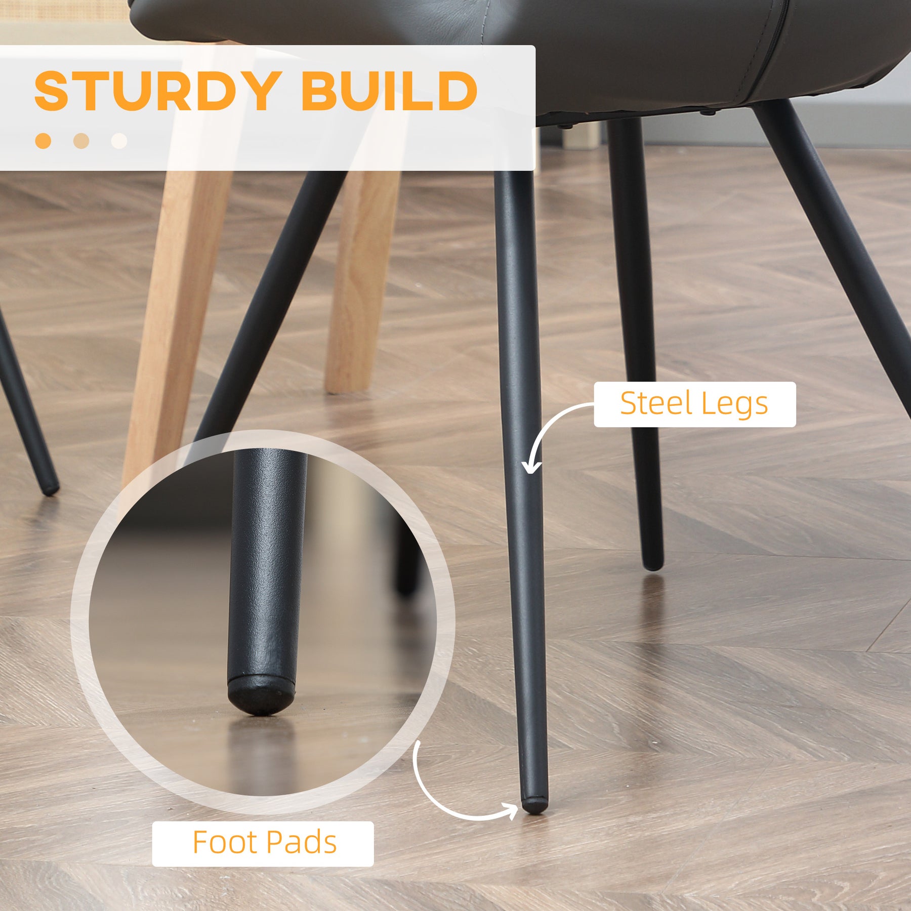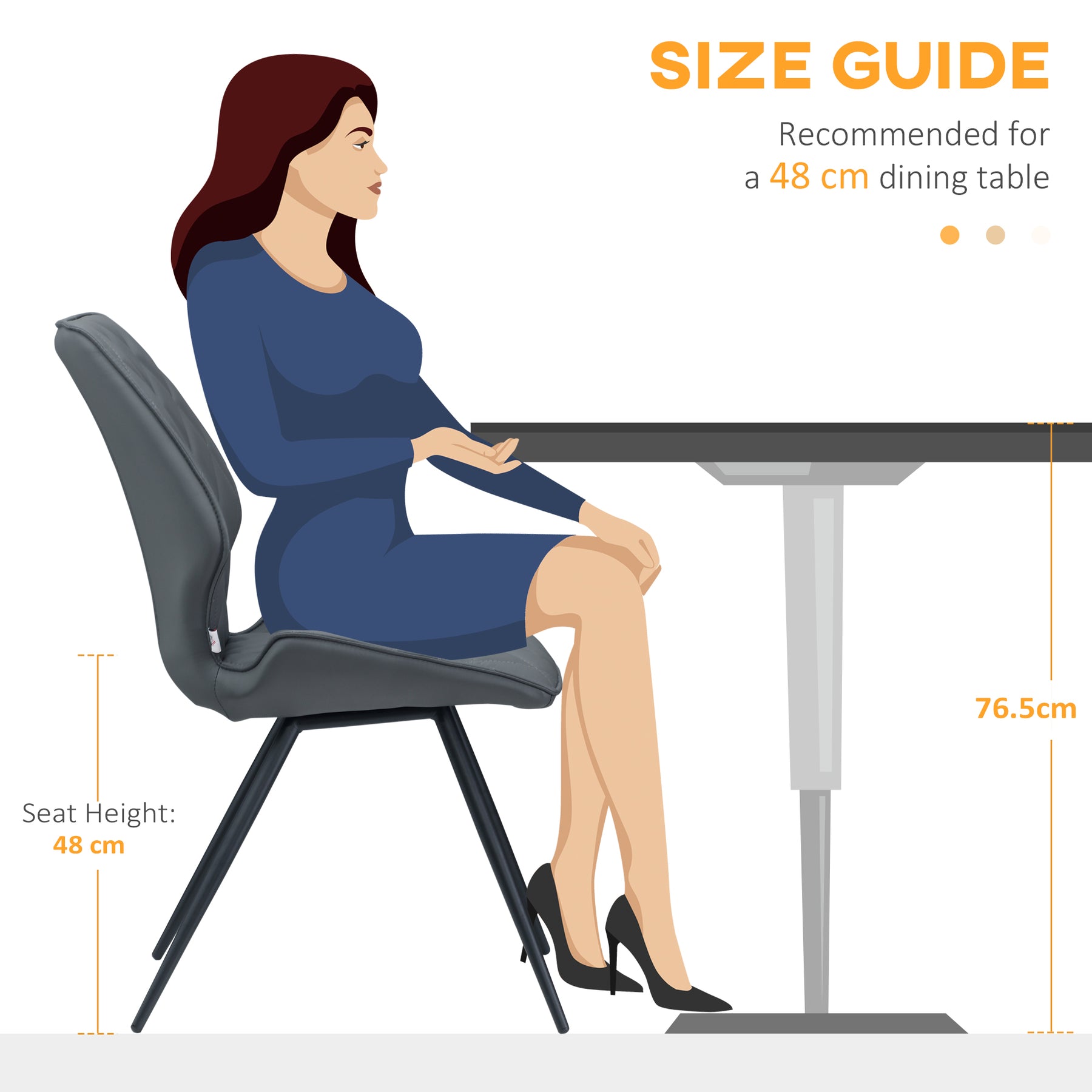 These dining room chairs set give you a comfortable - and supportive - spot to dine in. A steel base for plenty of support. The seats are filled with padded for comfort, with the tall backs supporting you. Wrapped in faux leather upholstery for style.