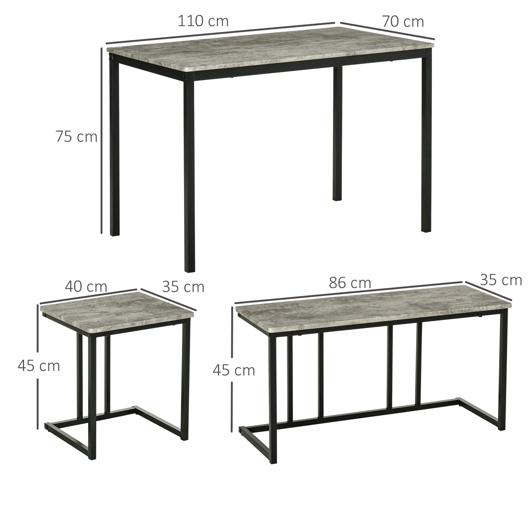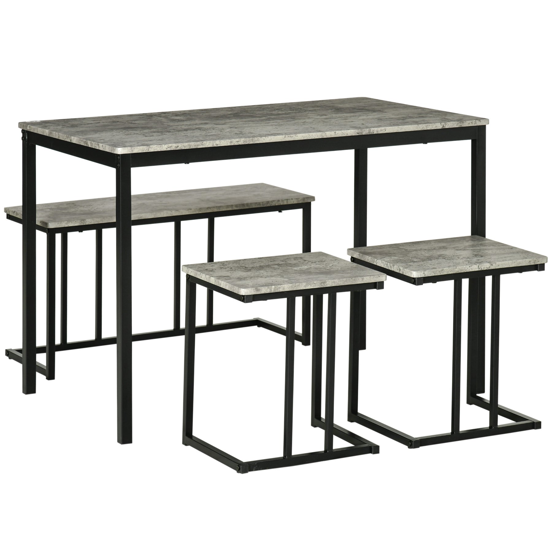 MCL Dining Table and Chairs Set for 4 People, Concrete Effect Kitchen Table and Bench Set with Steel Frame, 4 Piece Dining Room Sets, Grey