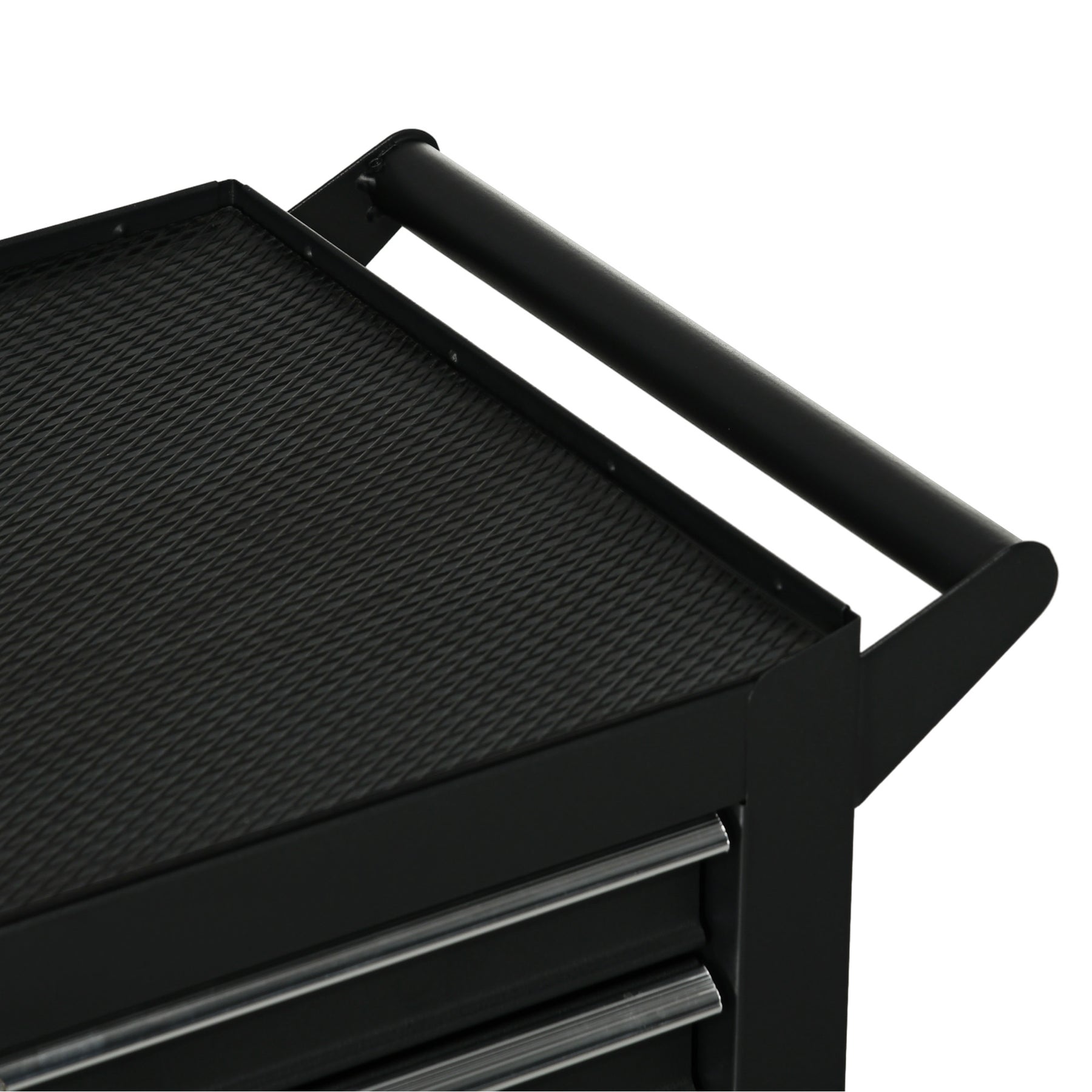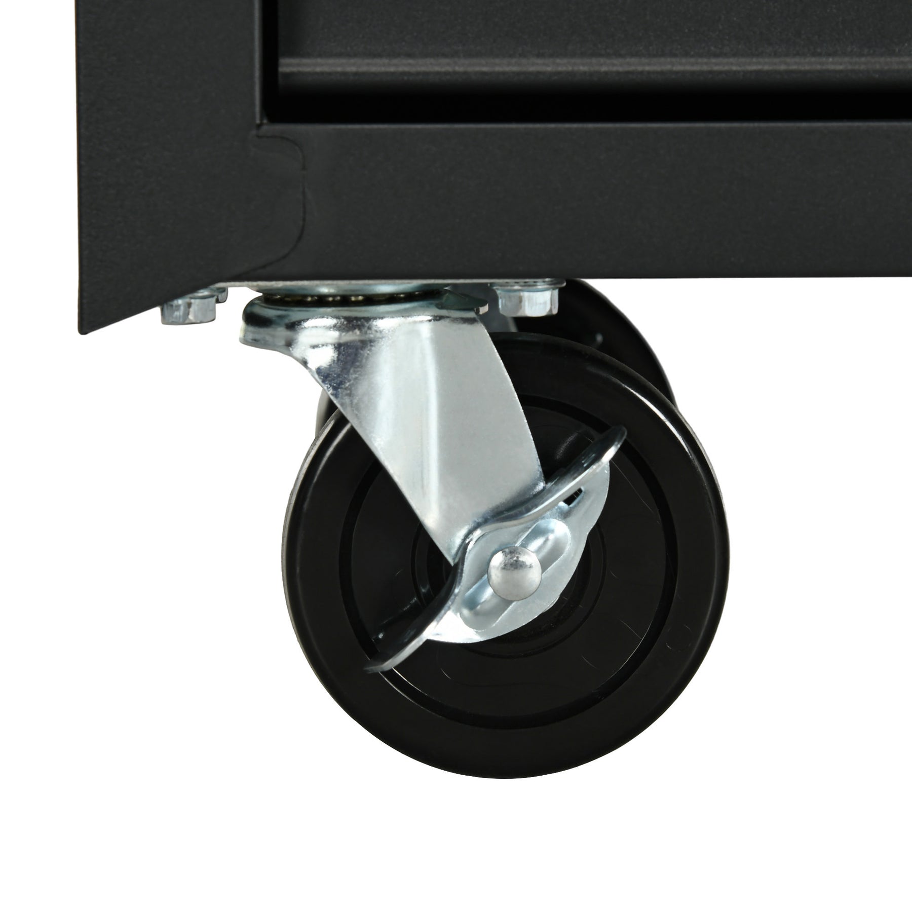 An ideal tool storage solution from . The practical tool set is equipped with multiple drawers and trays for storing all of your tools and keeping them organized. This unit provides with spacious storage space for garage essentials or other tiny accessories. Four wheels (2with brakes) for easy movement. An ideal tool unit for any garage or workshops