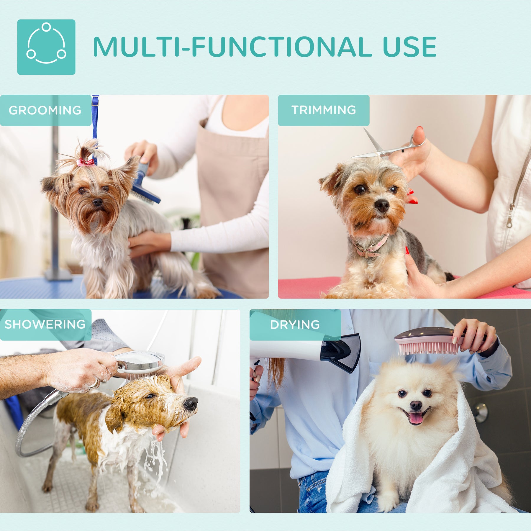 MCL Foldable Dog Grooming Table Pet Drying Table with Adjustable Arm Non-Slip Rubber Tabletop Aluminium Alloy Edge Stainless Steel Bar Sling 94.5 x 55 x 81cm Black