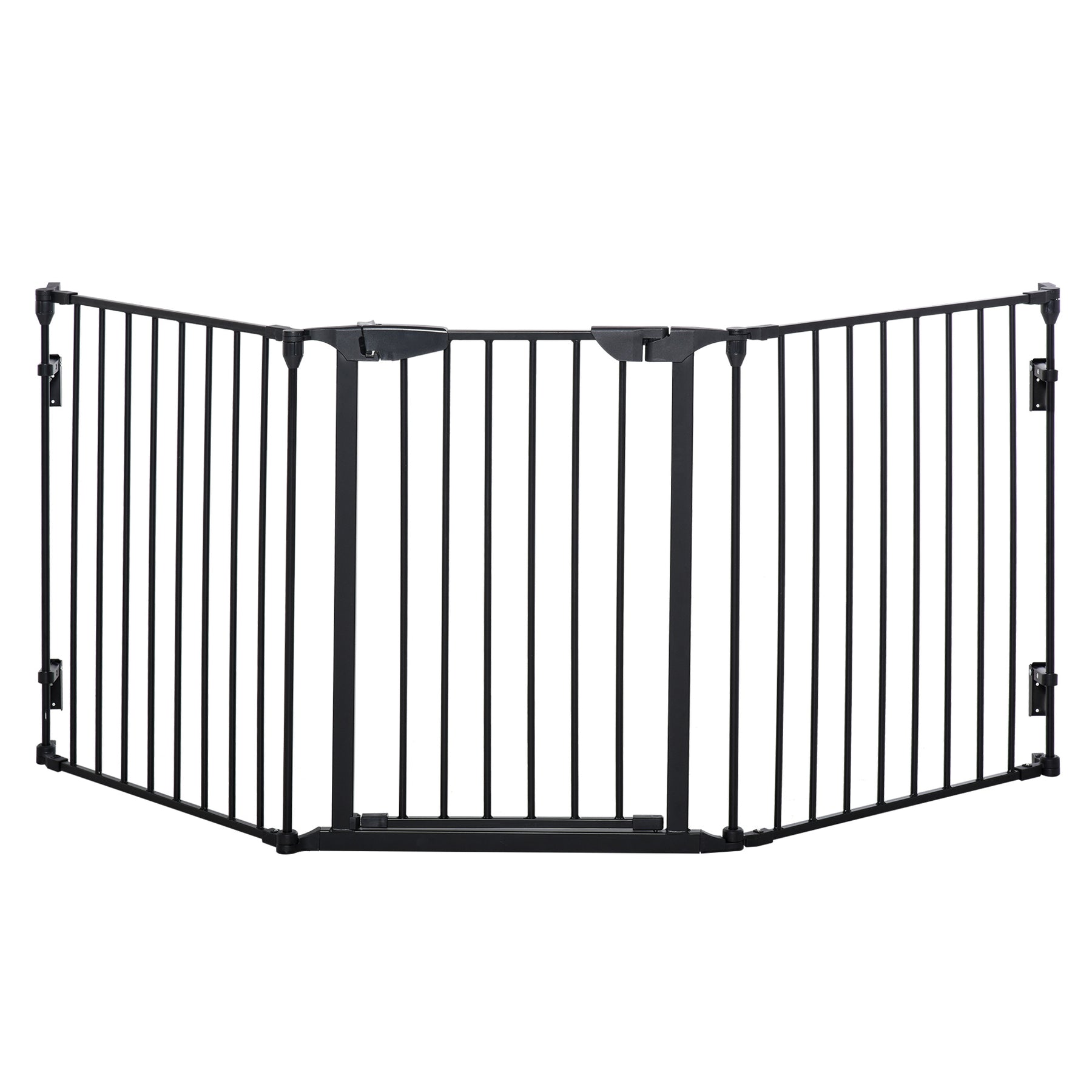 MCL Pet Safety Gate, 3 Panels Playpen Fireplace, Foldable Metal Fence, Stair Barrier, Room Divider, Fire Guard w/ Automatic Closing Door, Black