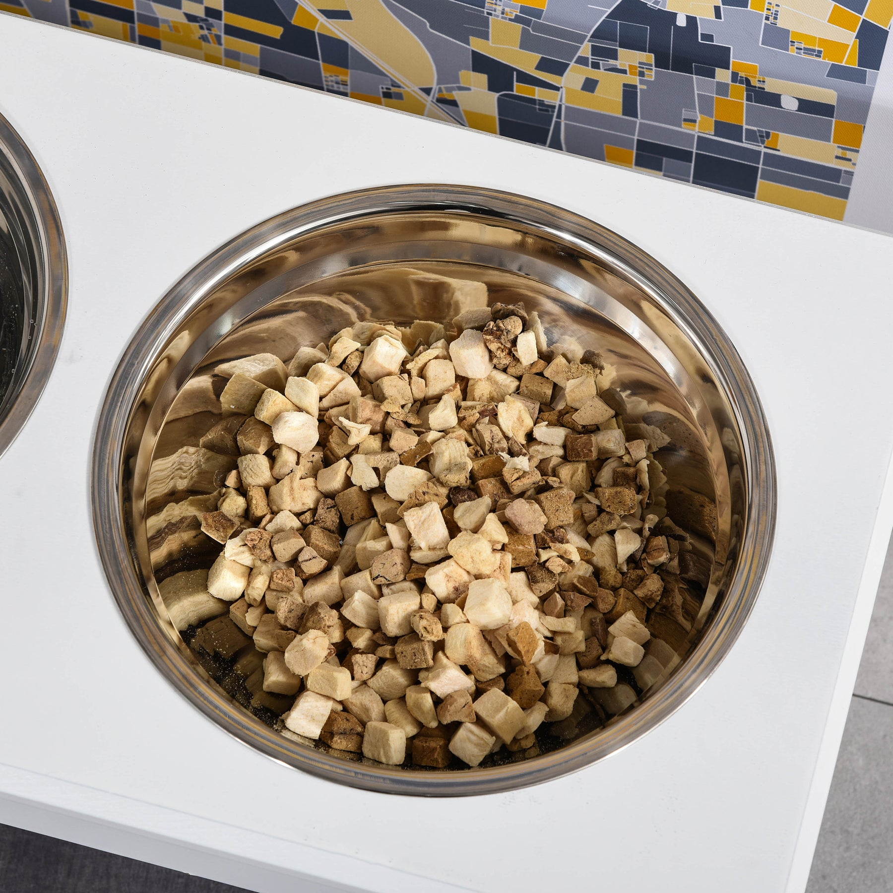 • Elevated pet bowls with anti-slip feet make it stable and prevent sliding, offering protection for your floors also.