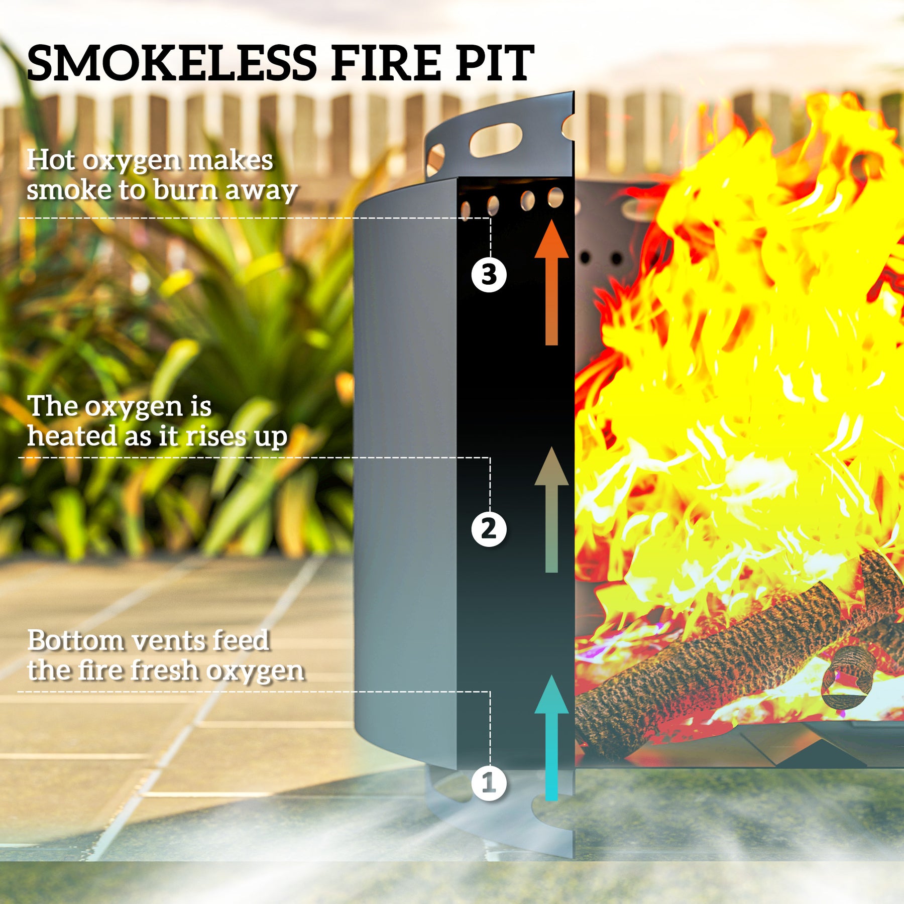 Sleek, stylish and super helpful: say hello to this modern firepit. Made from powder-coated metal so it's tough and high heat resistant, it's crafted into a smooth sphere design. It has a smokeless secondary combustion system: oxygen enters from below and channels between the walls for a strong and powerful burn, whilst burning the fuel down to ash for a smokeless experience - enjoy the heat like never before!