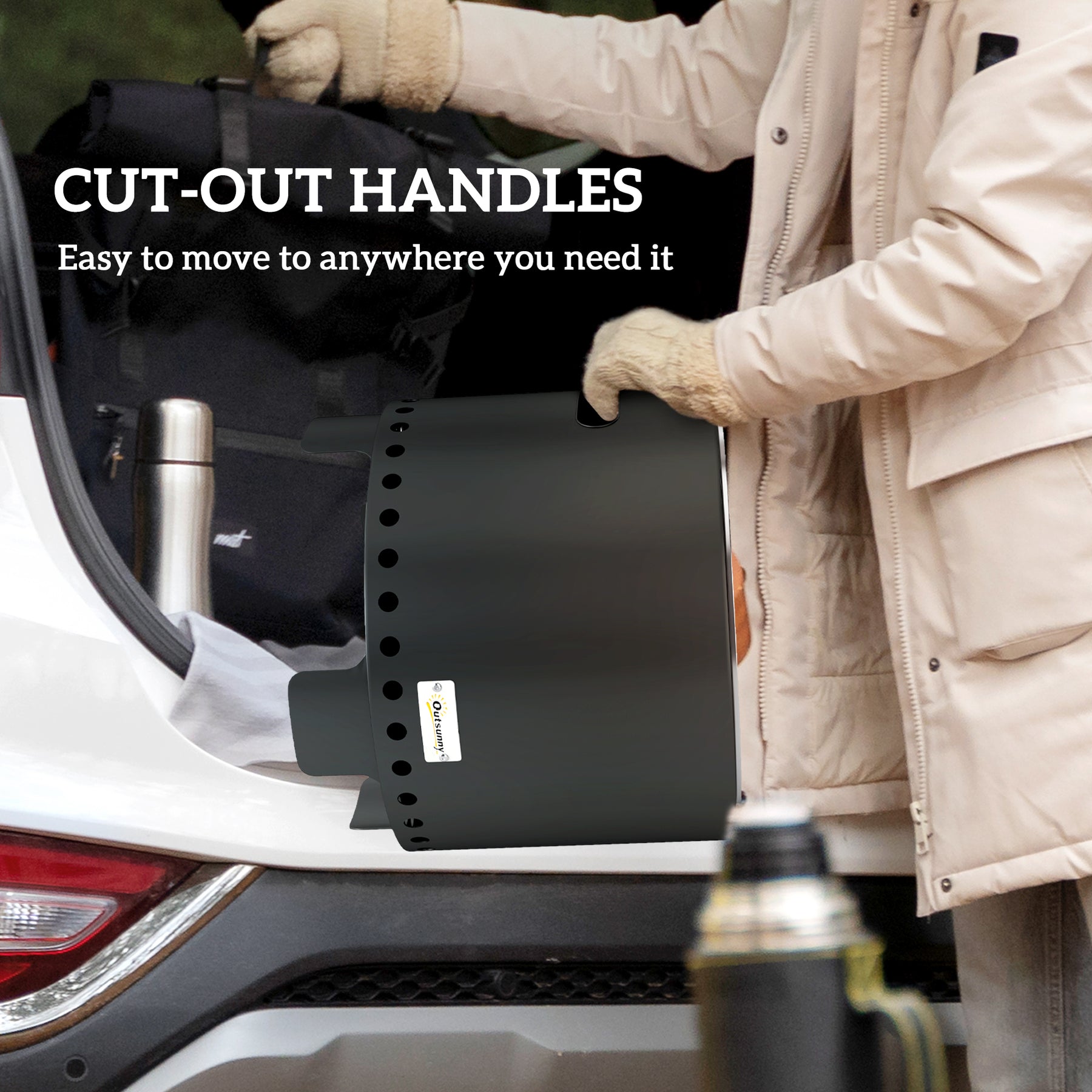 Sleek, stylish and super helpful: say hello to this firepit. Made from powder-coated steel with dark grey finish, it's tough and high heat resistant. It has a smokeless secondary combustion system: oxygen enters from below and channels between the walls for a strong and powerful burn, whilst burning the fuel down to ash for a smokeless experience - enjoy the heat like never before!