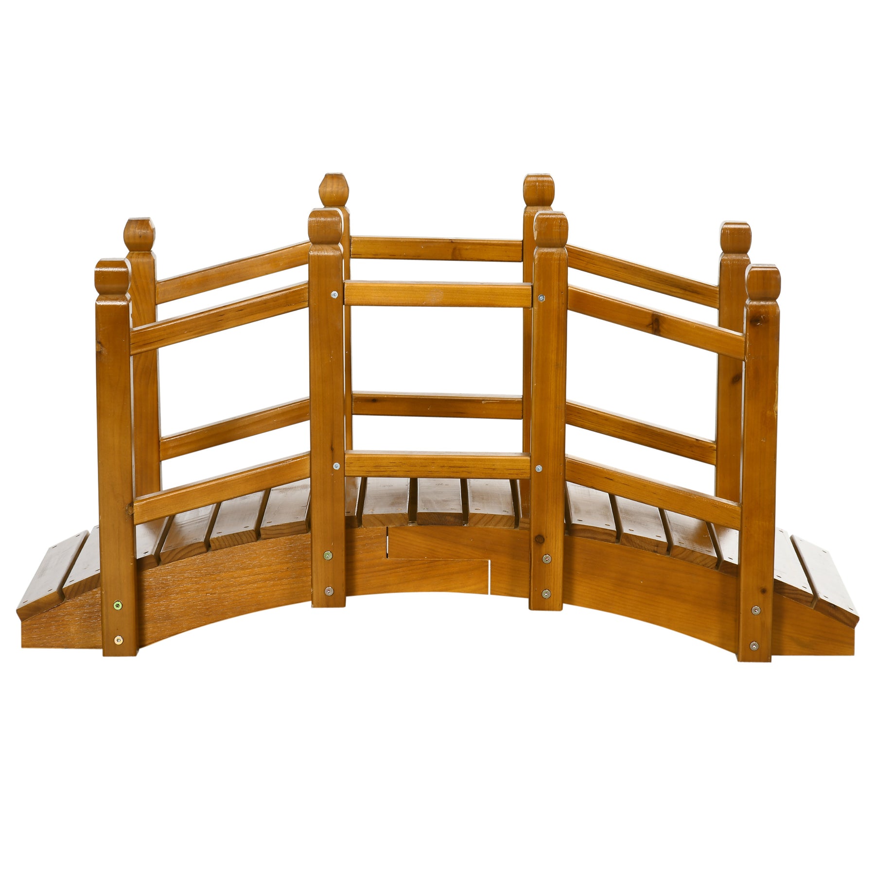 This wooden bridge for garden is a must-have charming piece for your garden. Made from solid fir, this bridge is tough, coated with weather-resistant paint for extra protection - resisting rot, cracking, and splitting. Comes with two high side rails so you can hold on, with rounded knobs so you can grip on comfortably. Add a unique piece for your garden.