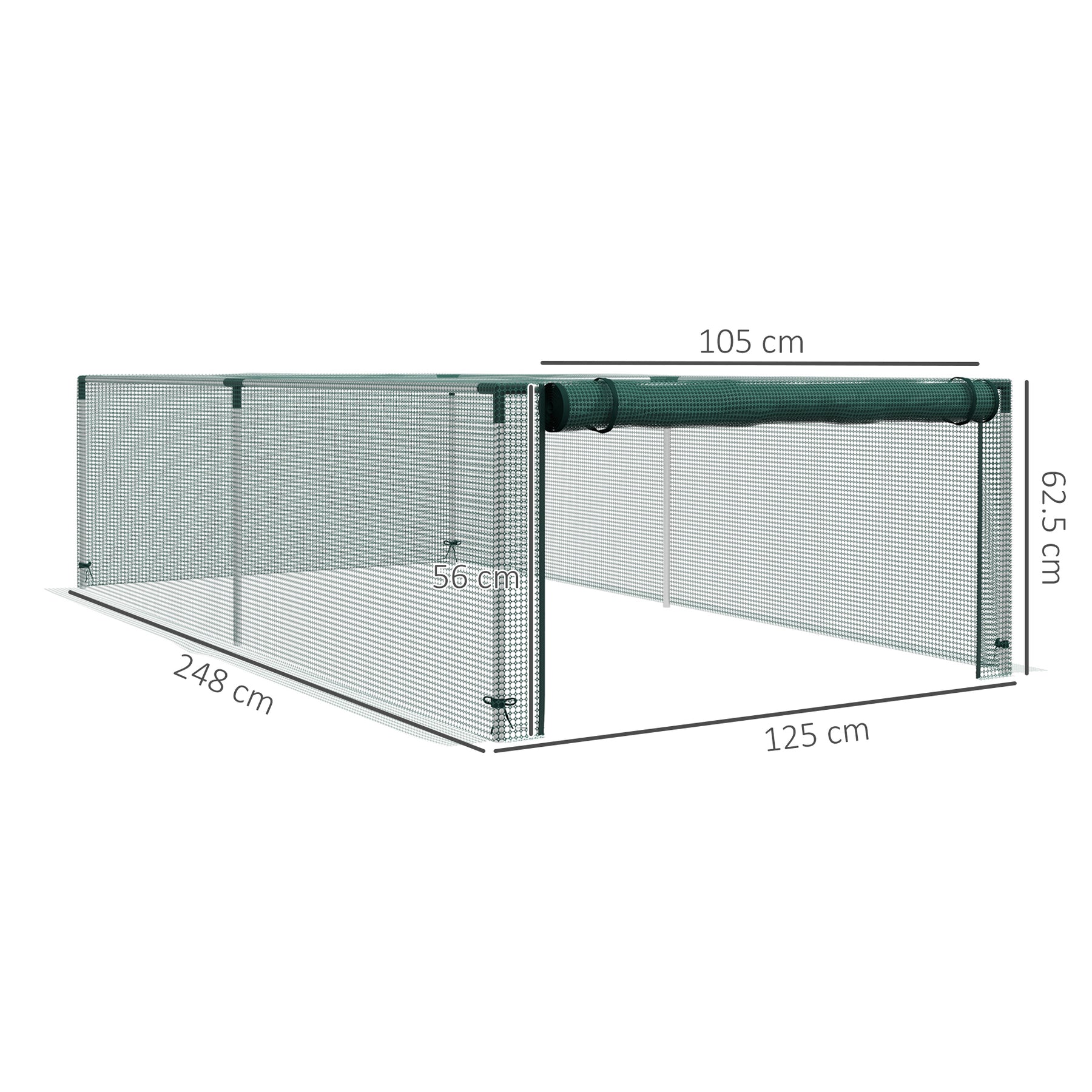 This plant protection cage is the easy option for outdoor growth. The 248 x 125cm size is spacious - offers room to grow plenty of plants, vegetables, fruits and other crops. With a steel frame, the core of this vegetable and fruit cage is strong: it stands steady and in shape. A tear-resistant cover on the sides and roof ensure all inside crops are protected from outer elements; whilst still letting sunlight to encourage growth.