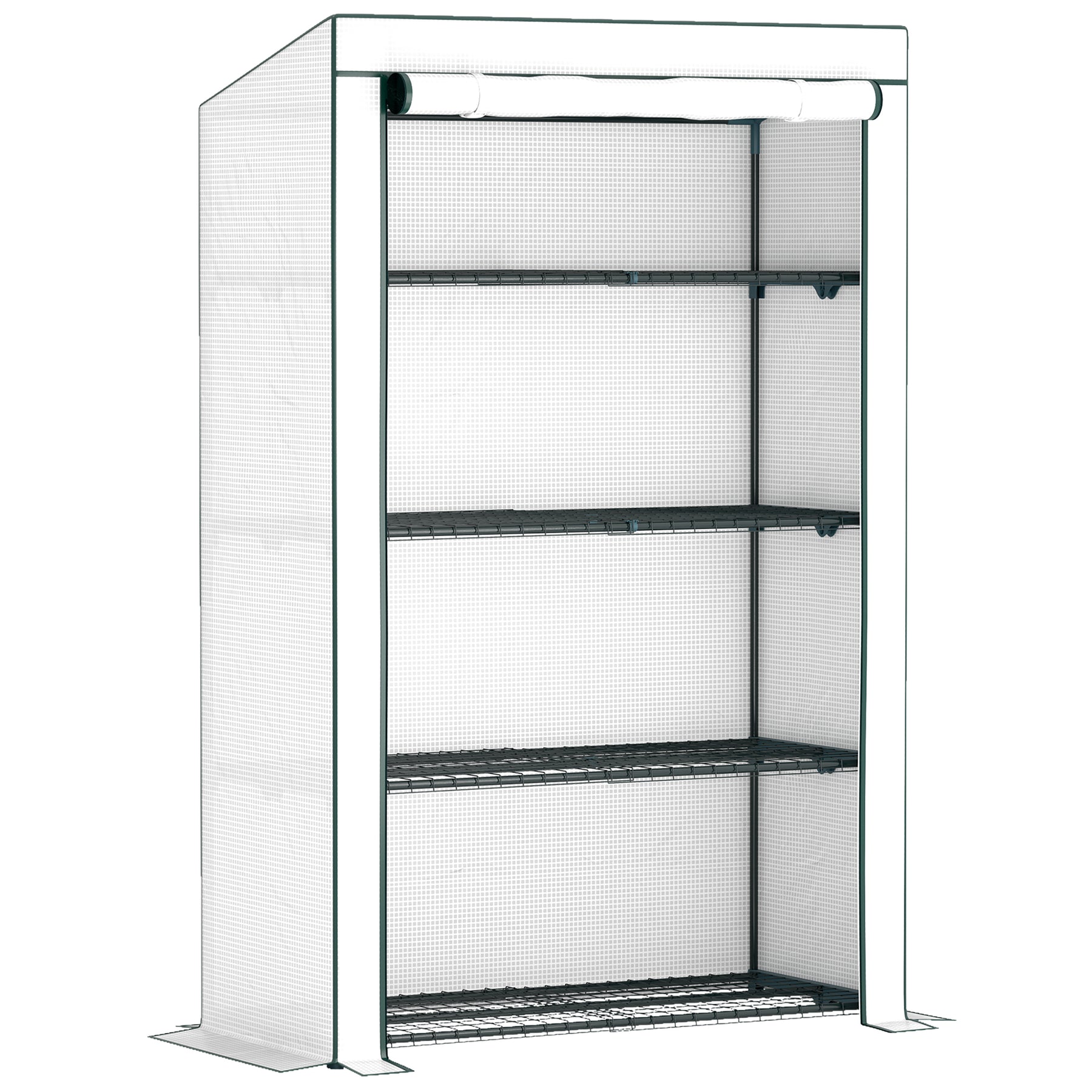 This four-tier greenhouse offers lots of space for flower pots, seed trays and more; the inside is protected with the 140g/m² plastic cover - shields plants from outer weather, whilst allowing nourishing sunlight through. Complete with a roll-up zipped for easy access and fresh air, whenever you want.