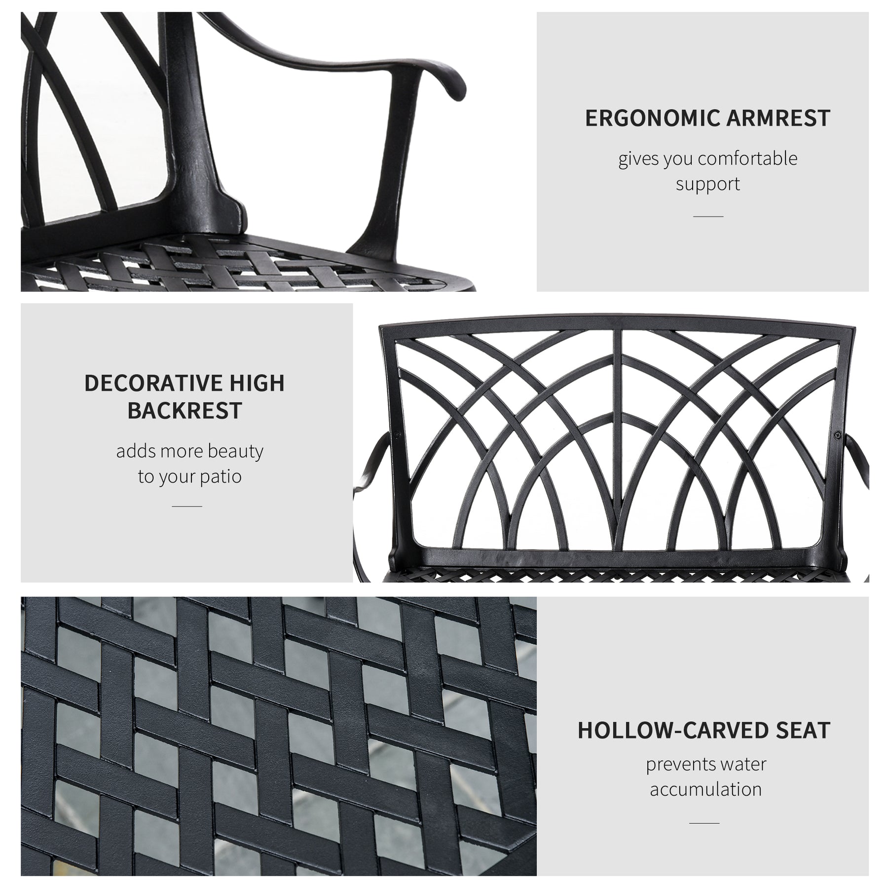 MCL 2-Seater Cast Aluminium Garden Bench Loveseat Outdoor Furniture Chair w/ Decorative Backrest & Ergonomic Armrest for Patio Terrace Porch