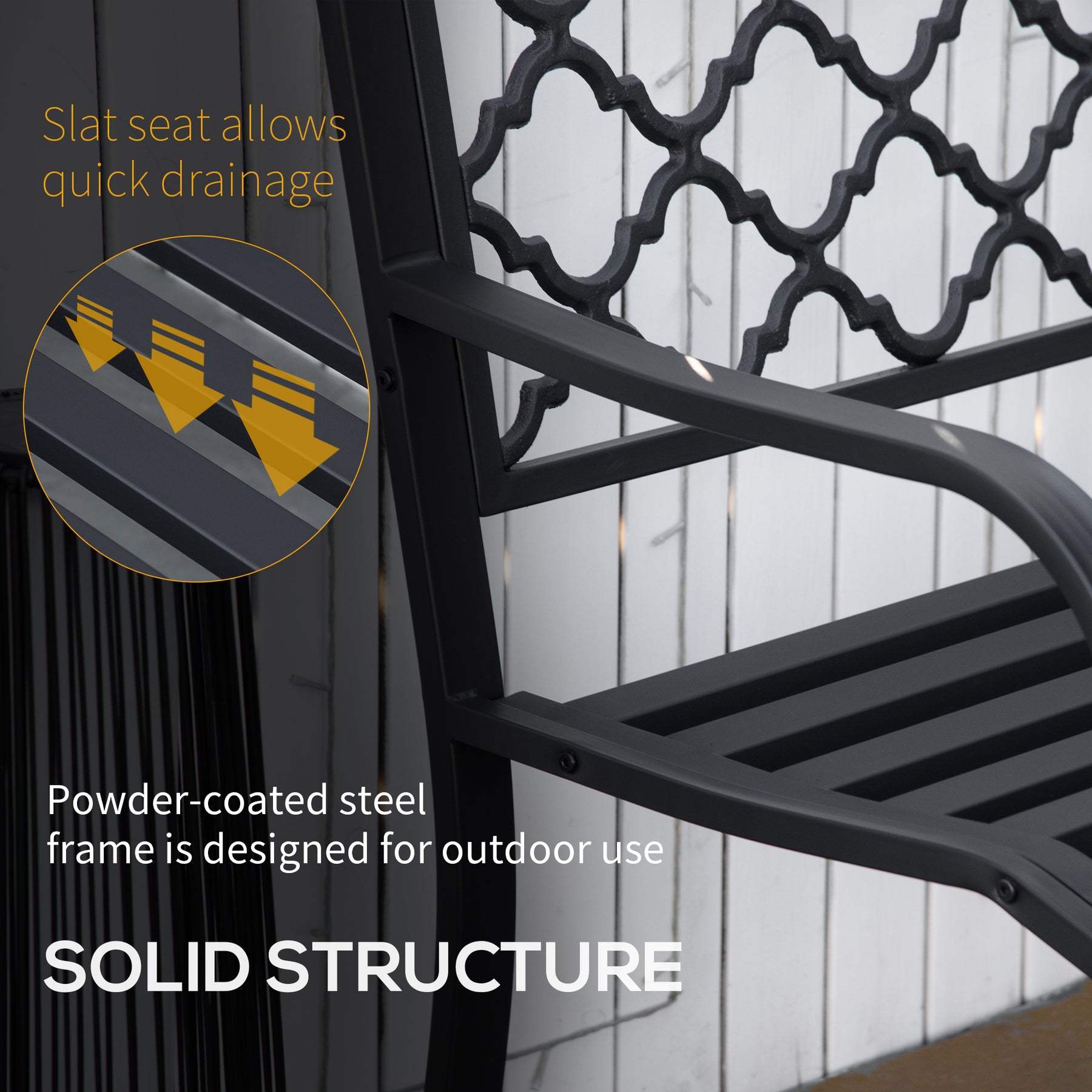- Slatted design is good for draining on rainy days
