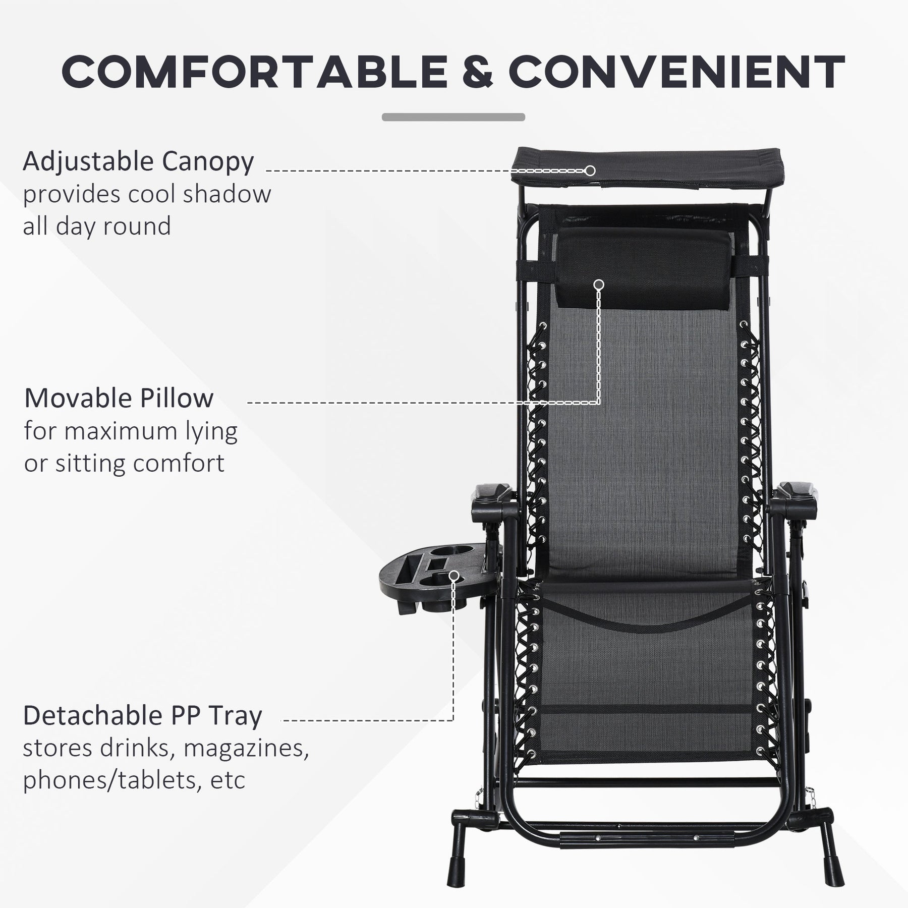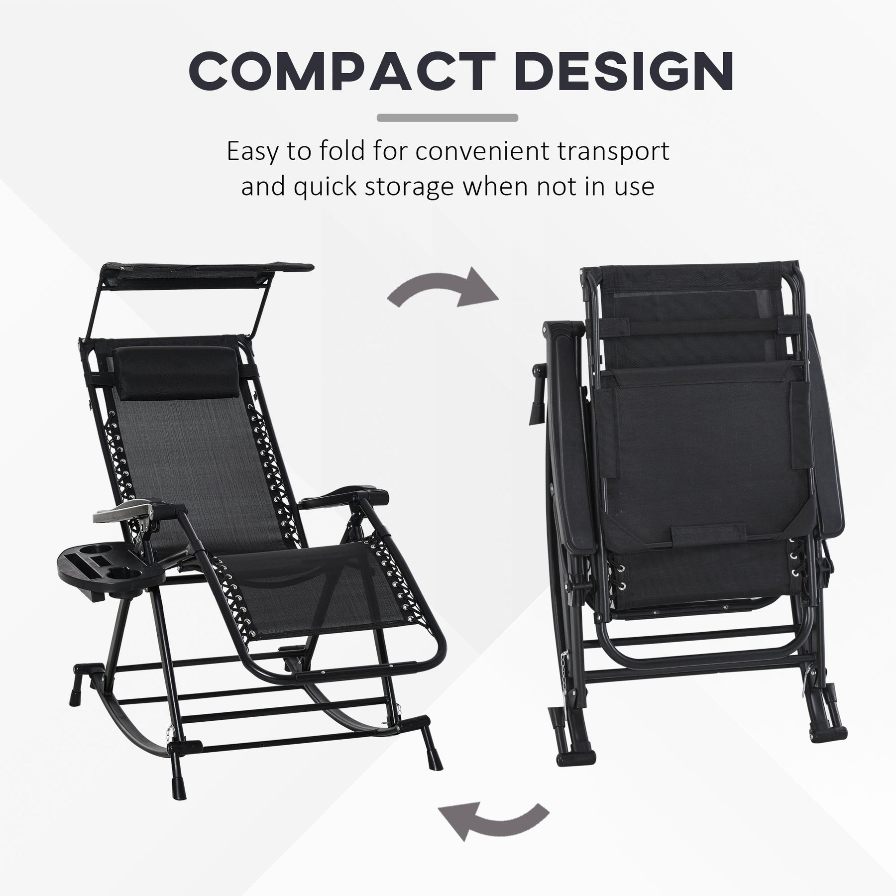 MCL Garden Rocking Chair Folding Recliner Outdoor Adjustable Sun Lounger Rocker Zero-Gravity Seat with Headrest Side Holder Patio Deck - Black