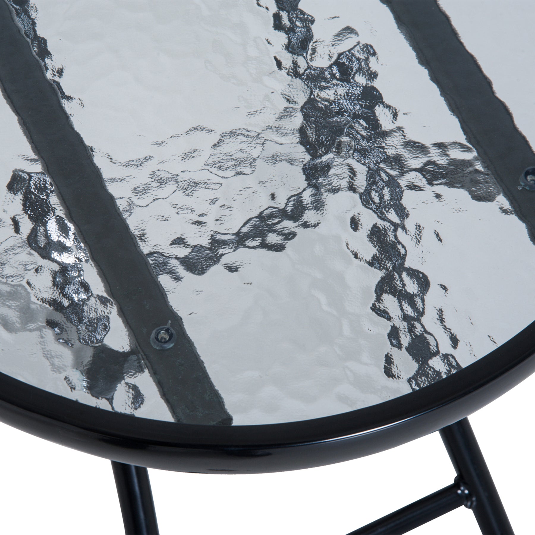 Rock yourself to relaxation with this MCL three-piece garden bistro set. The two chairs, with steel frames for strength, are formed into a rocking shape - move forwards and backwards gently to relax. The fabric seat holds your body, the elastic cords connected to the frame supports. Top pillow keeps your head and neck comfortable. The matching round table is fitted with a glass tabletop - a sleek addition and a safe holding place.