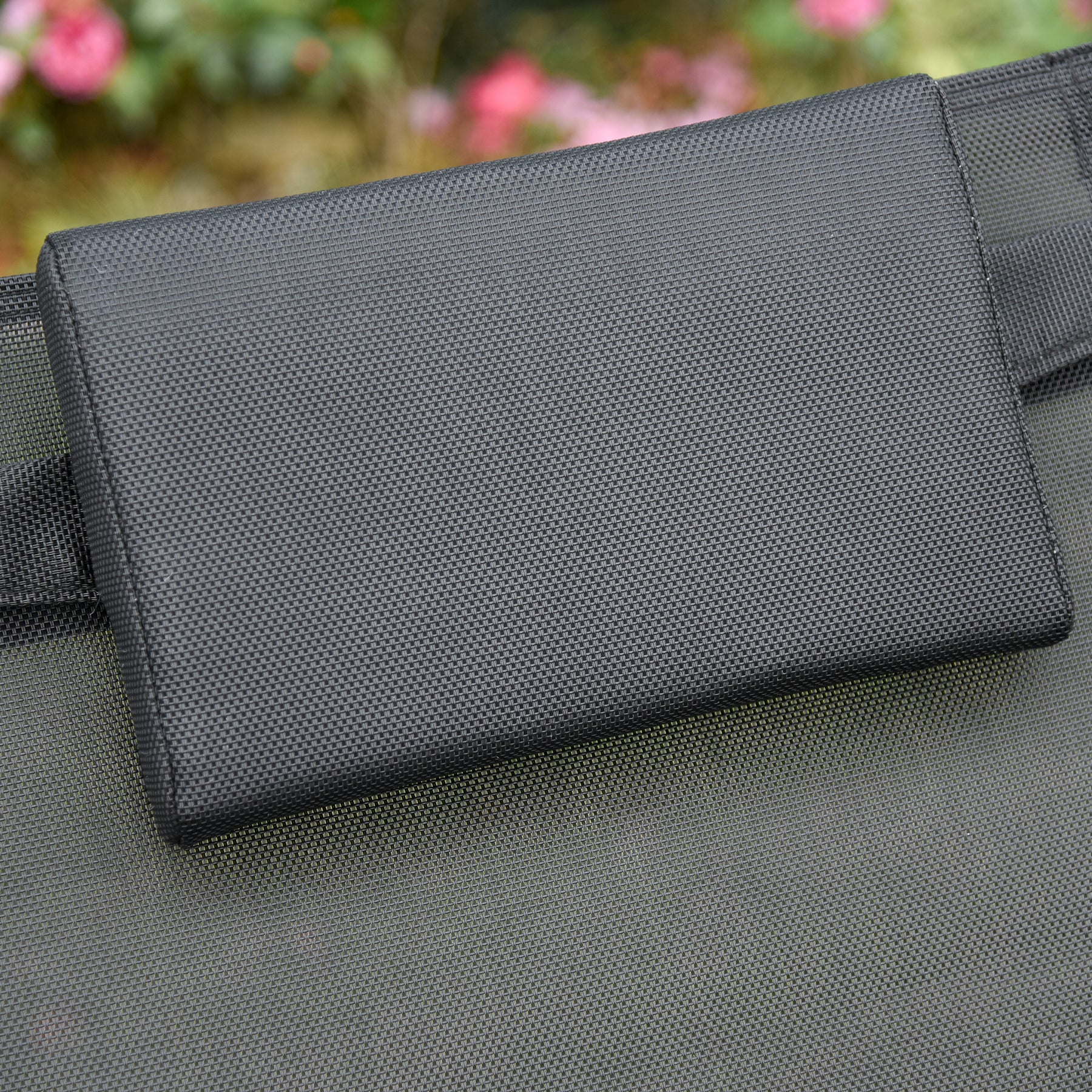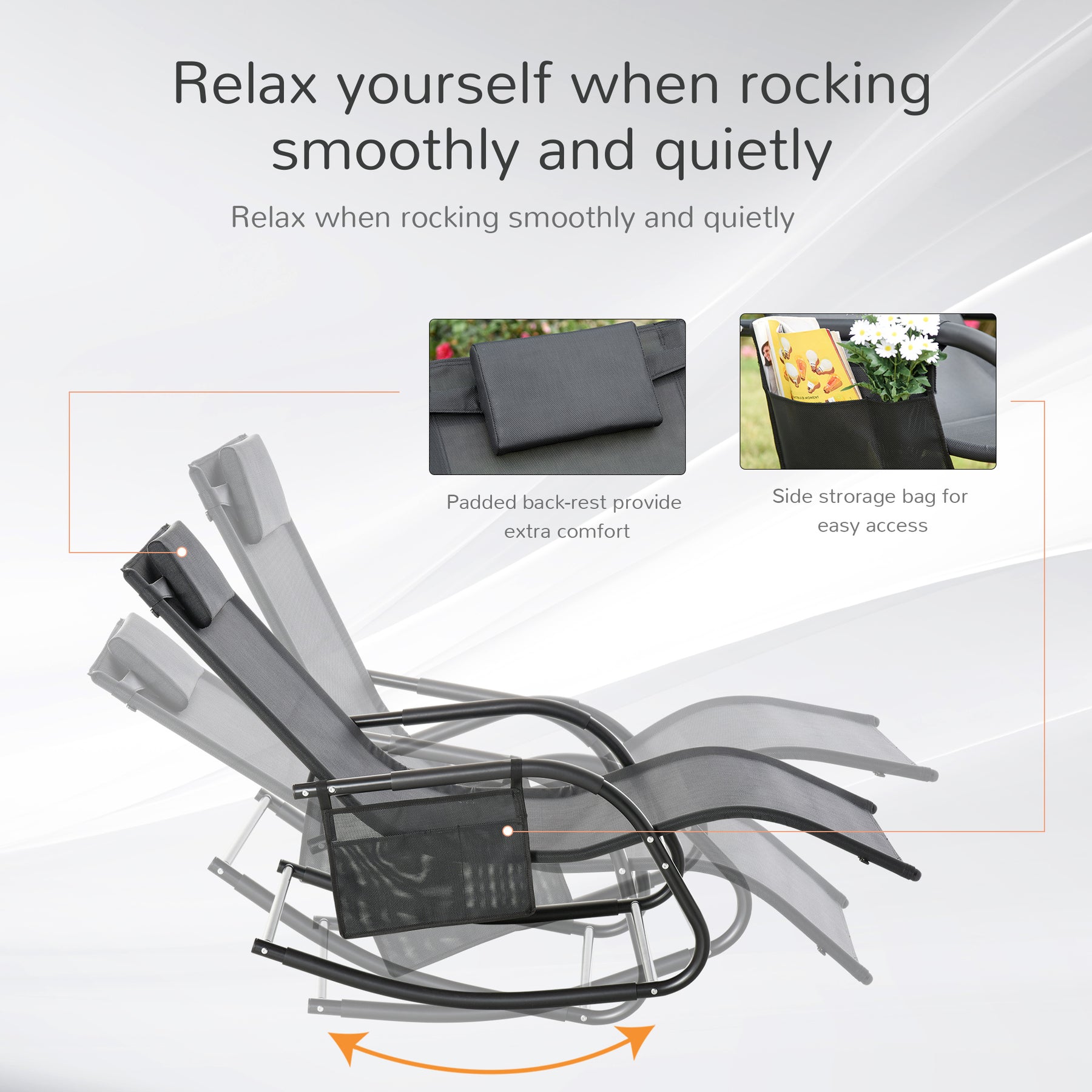 This outdoor rocking chair from is a great way to relax outdoors. The curved frame has been made with your body comfort in mind, hugging to the contour of its shape. The seat is wrapped in mesh fabric which holds yours body in place, with a removable top pillow for head and neck comfort. Our patio rocking chair is finished with a removable side pocket, keeping everything you need next to you and rubber pads on the metal frame for protection.