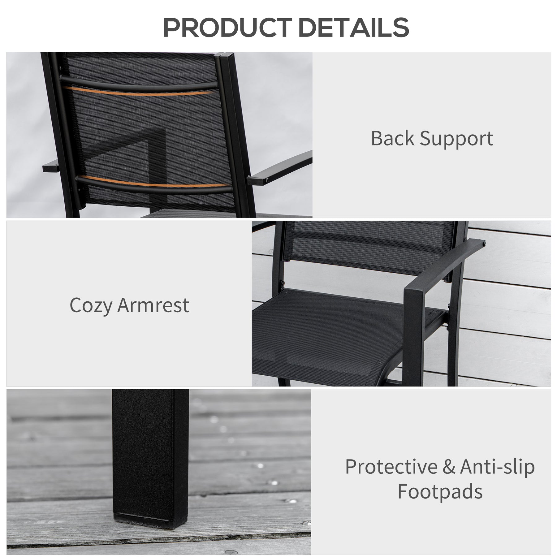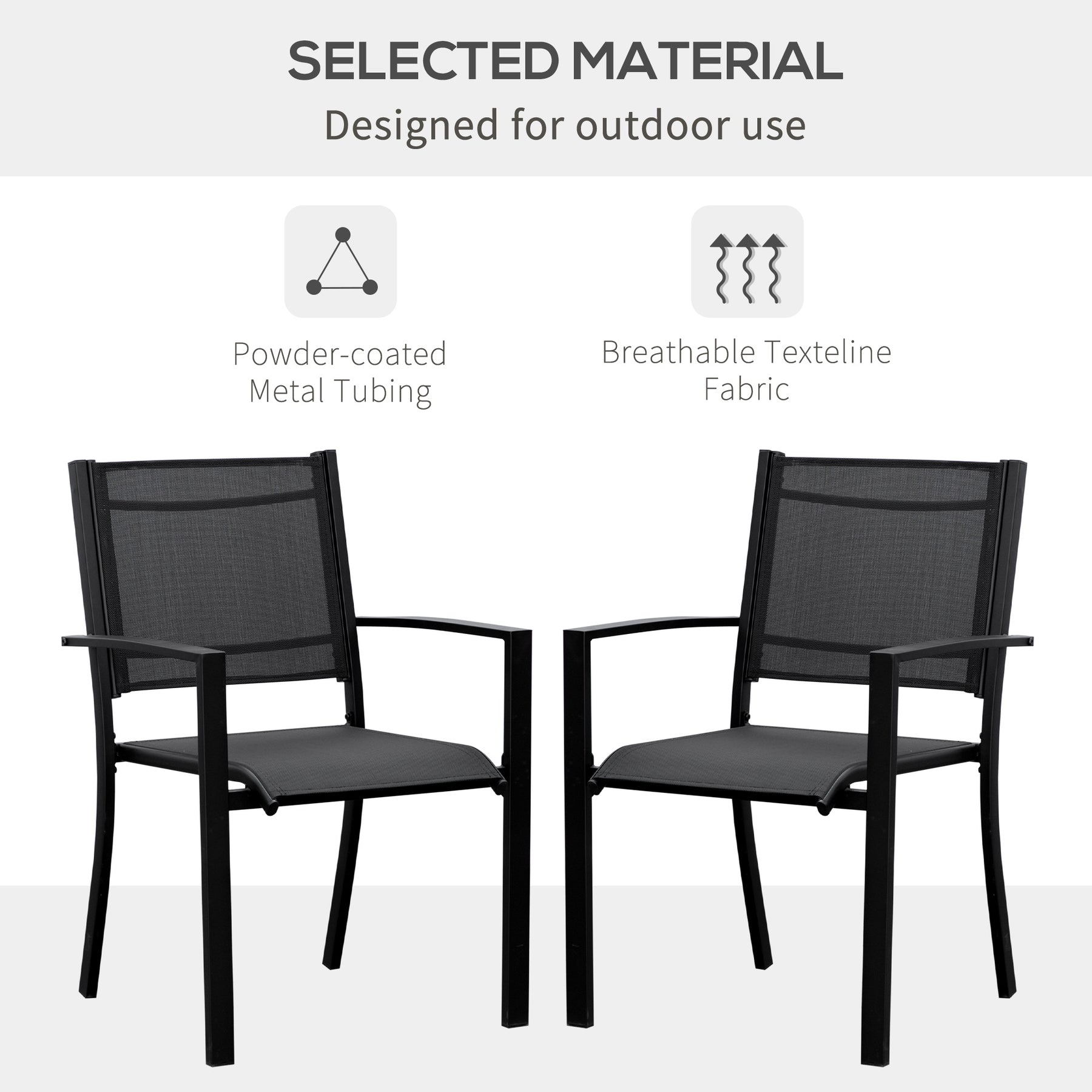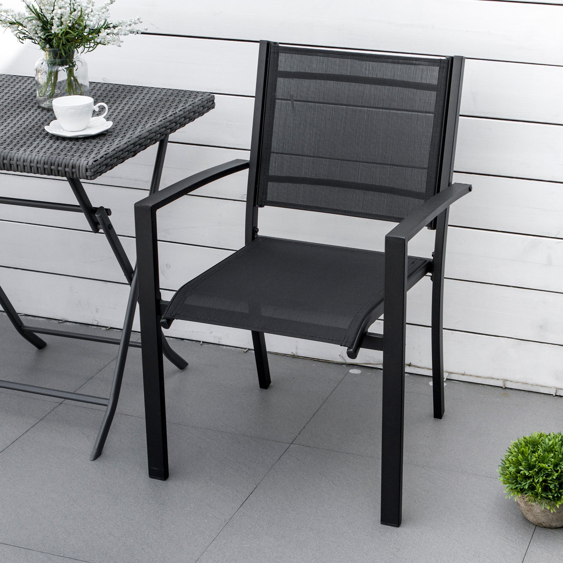Give your outdoor space instant style with these two chairs from . A classic shape in a slight boxy finish, each frame is crafted from powder coated steel for a structure which is sturdy and tough, with a texteline seat and back to allow you to sit comfortably. High backs and armrests allow additional comfort and support, with plastic caps on the foot to promote extra stability and protect the floor beneath. The practical solution to enhancing your outdoors.