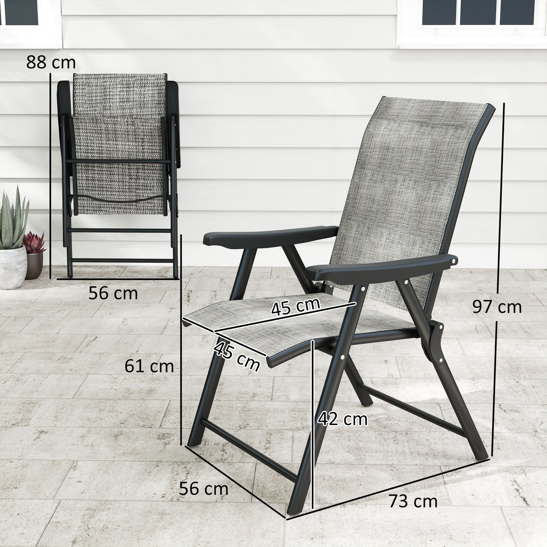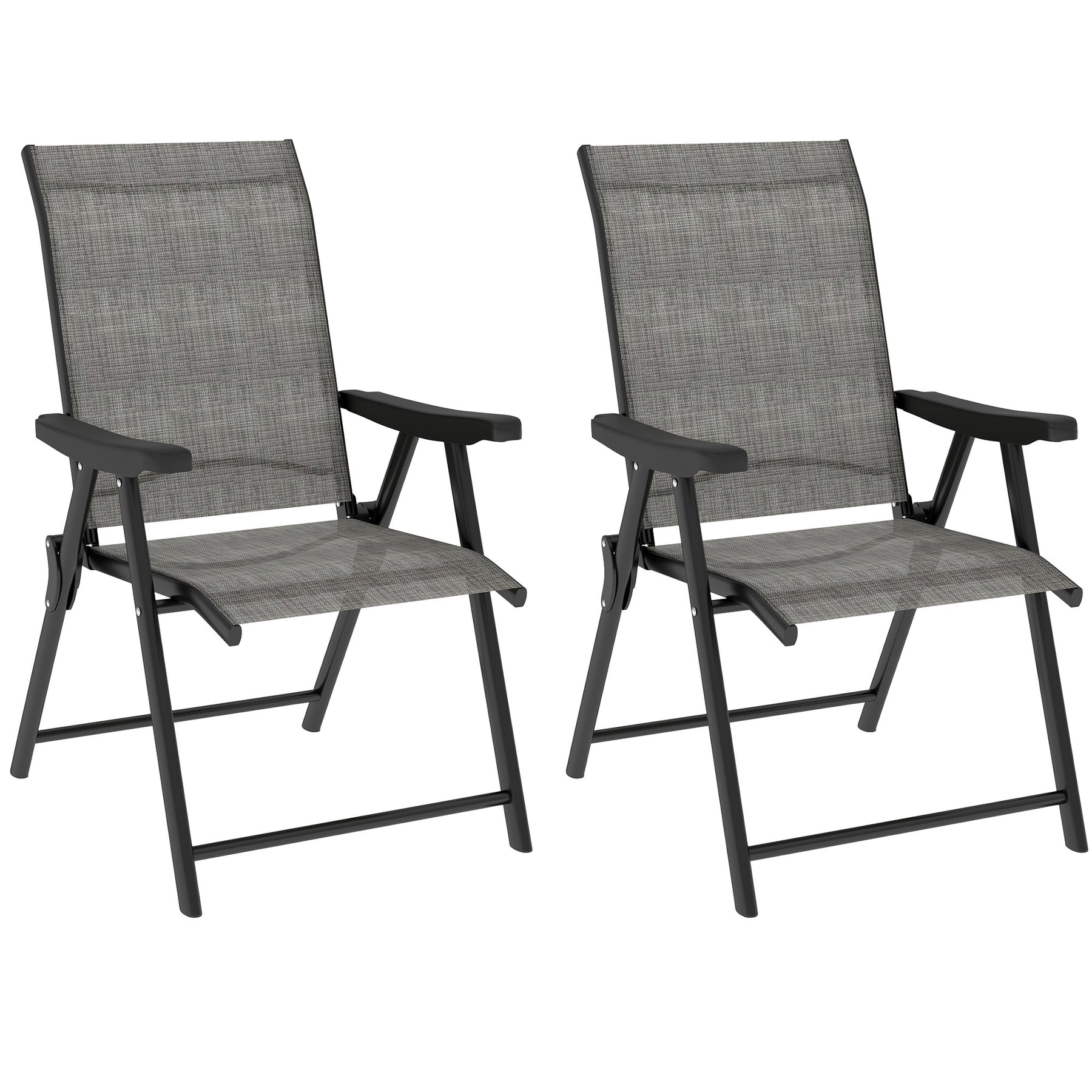 An essential set for garden and outdoor spaces - these two outdoor chairs. With 63 cm high backs and armrests for support, the breathable mesh fabric seats hold you comfortably. Using powder coated steel frames for a strong core, these chairs are foldable - carry around and store whenever you want