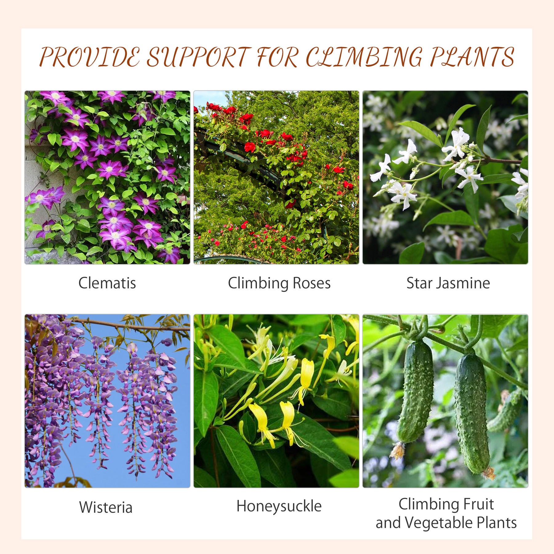 These metal garden trellis frames allow you to grow plants vertically. A pack of two for double the growing room. Both are made from powder coated metal for a strong structure. Bottom spikes to insert into the ground. Complete with anchors and curved lines all over for decoration.