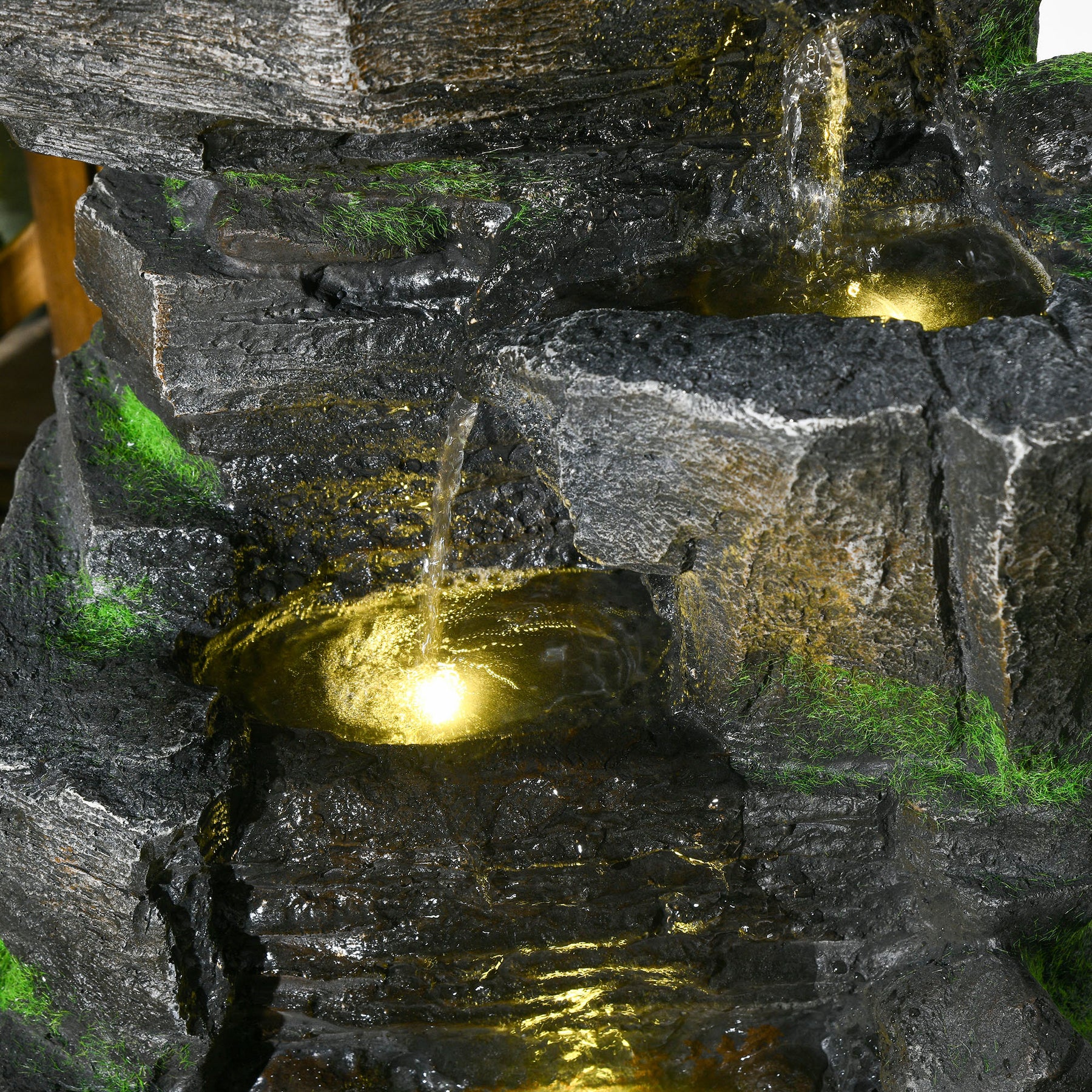 Transform your garden into a tranquil oasis with the garden water feature. This enchanting four-tier waterfall, complete with three LED lights, creates a serene atmosphere as dusk falls. Solar-powered for nighttime enjoyment and designed with a natural grey stone rock tower with moss accents, it seamlessly blends into your outdoor space, inviting relaxation beside your very own garden waterfall.