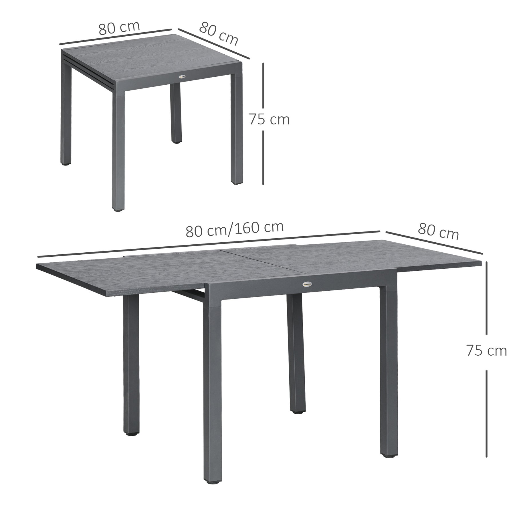 This garden dining table effortlessly transforms from a standard four-seater, to a spacious six-seater: great for bringing out extra room when needed. Aluminium legs and a steel top make this a strong piece, suitable for outdoor use. Enjoy more of the outdoors with this versatile aluminium garden table.