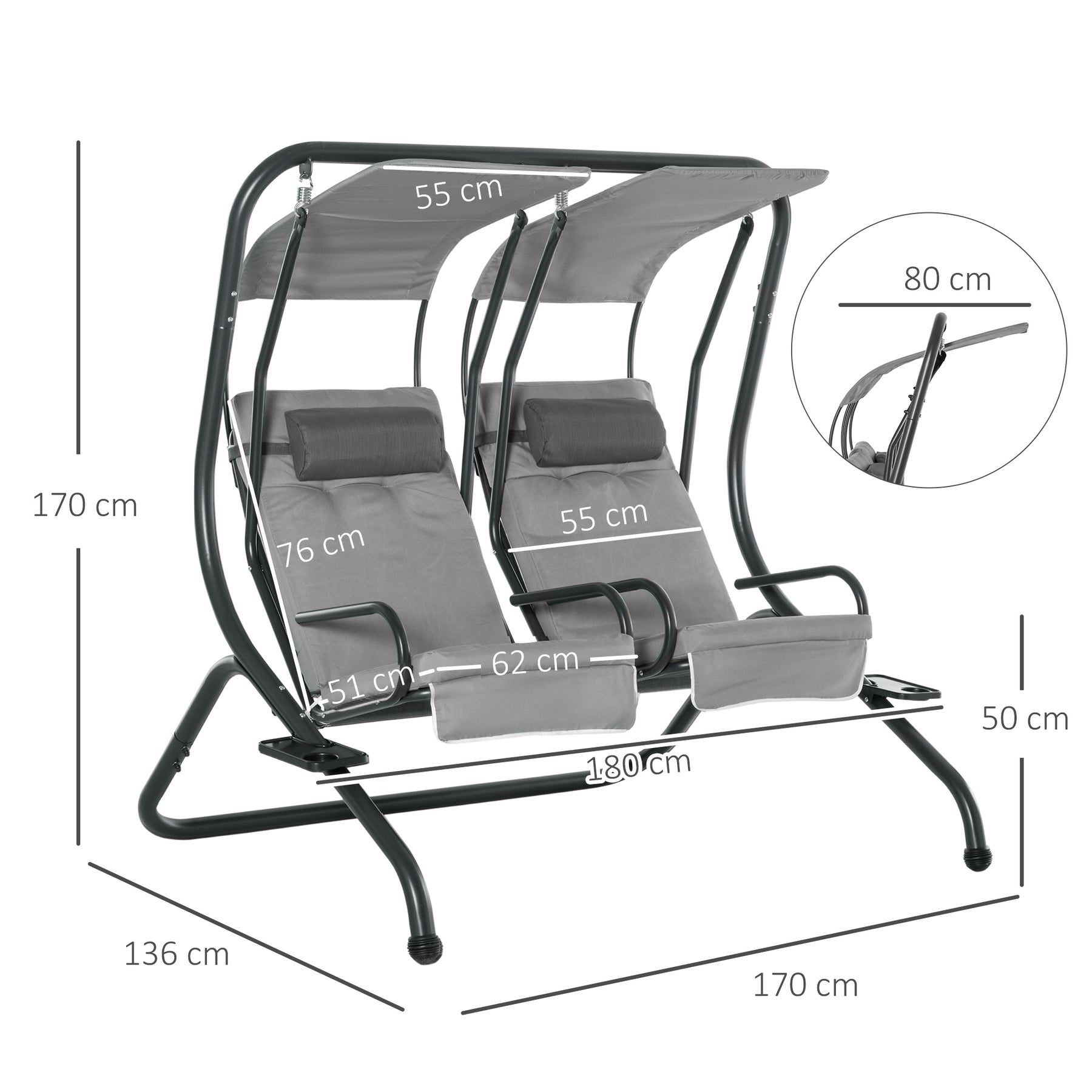 Double the outdoor fun with this two-seat garden swing with canopy from MCL. Both swing seats for adults seats come with a cup holder so you can enjoy your favorite drinking whilst soaking up the sun. The curved steel frame is durable and sturdy, with a large base so it keeps balanced. You'll cherish your summer days even more now with this garden swings for adults.