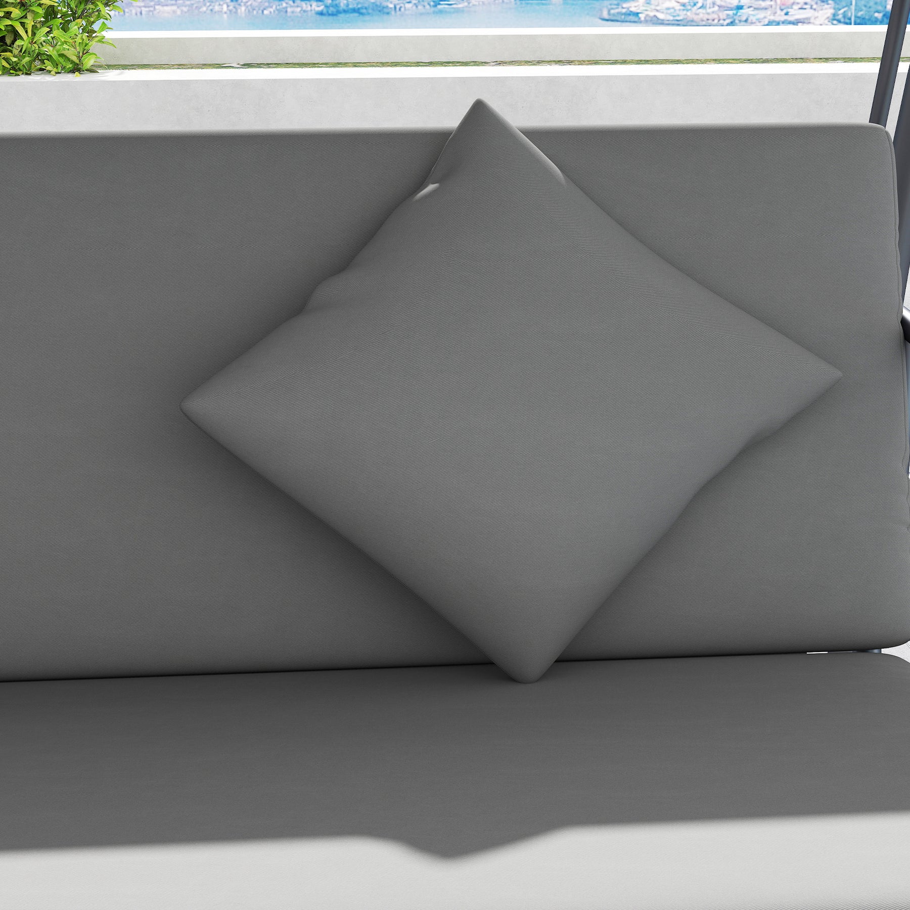 Make the most of the sunny days with this 2-in-1 convertible outdoor swing chair from . Big enough to fit three people, 3 seater garden swing easily converts into a bed with an adjustable backrest to suit you and a canopy to protect you from hot sun. Garden swings for adults sit on a steel frame for stability and reliability. With two pillows supplied to provide even more comfort, there's no better way to enjoy to sit down and relax as the sun shines on a hot summers day.
